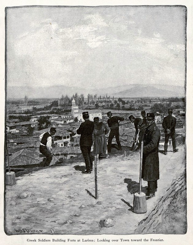 Μια σπάνια φωτογραφία φέρνει στο φως ο ιστοριοδίφης, ιατρός Νικόλαος Παπαθεοδώρου. Οχυρωματικά έργα στον Λόφο κατά τη διάρκεια του πολέμου του 1897 (τα οποία τελικά δεν χρειάστηκαν). Στο βάθος τα Ταμπάκικα και ο ναός της Ζωοδόχου Πηγής.