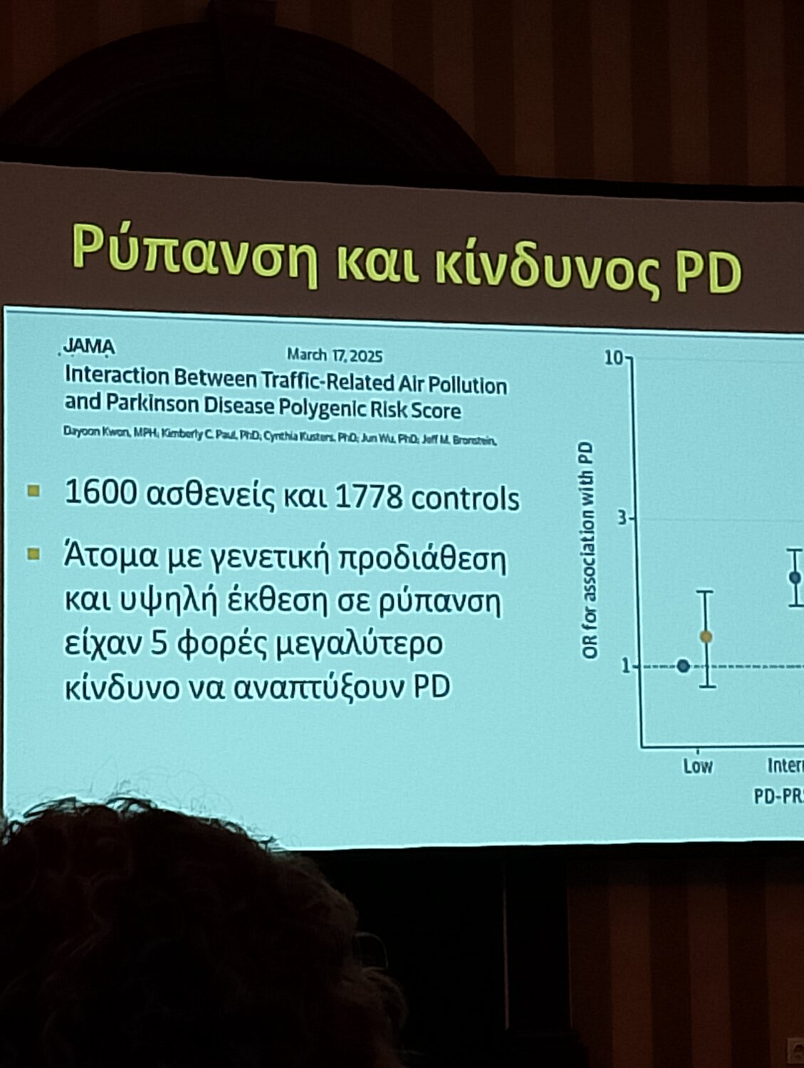 Κατά τη διάρκεια της συζήτησης για τη νόσο Πάρκινσον στο Συνέδριο της Λάρισας επισημάνθηκε από τον Καθηγητή Νευρολογίας, Διευθυντή Νευρολογικής και Πρόεδρο της Ιατρικής Σχολής Πανεπιστημίου Ιωαννίνων κ. Σπυριδων Κονιτσιωτη έρευνα που δείχνει ότι για ανθρώπους με γενετική προδιάθεση η υψηλή έκθεση σε ρύπανση από κυκλοφοριακο φόρτο από αυτοκίνητα αυξάνει κατά πέντε φορές τον κίνδυνο αυτοί να αναπτύξουν τη νοσο Πάρκινσον.