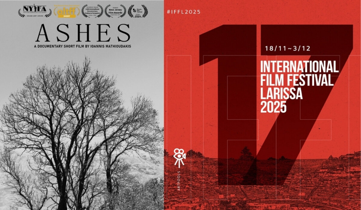 Μετά από ένα μεγάλο φεστιβαλικό ταξίδι που χάρισε στο Ashes (Στάχτες) 6 βραβεία και ακόμη 12 υποψηφιότητες σε κινηματογραφικά φεστιβάλ σε όλο τον κόσμο, το ντοκιμαντέρ μικρού μήκους που ξεκίνησε από τις Μέλαμπες, έρχεται στη Λάρισα, ως υποψήφιο για το βραβείο «Καλύτερου Ντοκιμαντέρ για την Κλιματική Κρίση» στο 17ο Διεθνές Φεστιβάλ Κινηματογράφου Λάρισας. Η προβολή του ντοκιμαντέρ έχει προγραμματιστεί για τη Δευτέρα 24 Νοεμβρίου στον Κινηματογράφο Victoria.