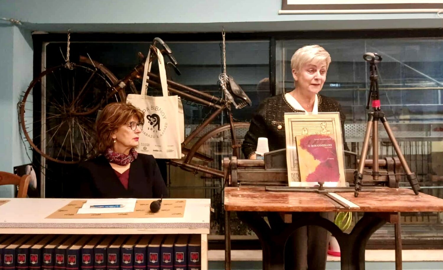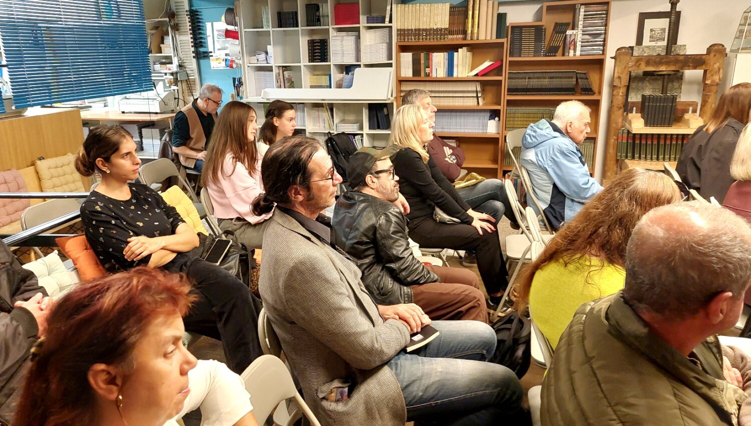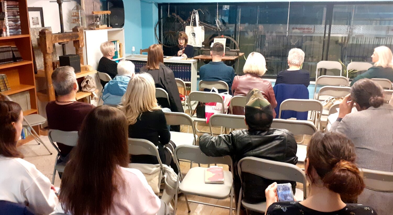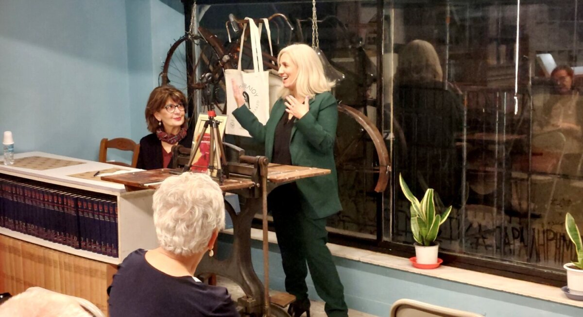 Ο χώρος του παλιού βιβλιοπωλείου αποδείχθηκε πολύ ζεστός, μ’ ένα σκηνικό μοναδικό, με τη μυρωδιά του χαρτιού να είναι χαρακτηριστική και τους ανθρώπους που αγαπούν τα μικρά βιβλιοπωλεία να πλαισιώνουν την εκδήλωση. Την παρουσίαση συντόνισε η Γιώτα Κούγιαλη και για το βιβλίο μίλησε Άρτεμις Παπανδρέου. Αποσπάσματα διάβασαν η Ελένη Χαδουλίτση, η Γεωργία Γιάγκου – Μαστροδήμου, ο Βαγγέλης Ρεμπάπης και ο Αργύρης Γιουρούκης.