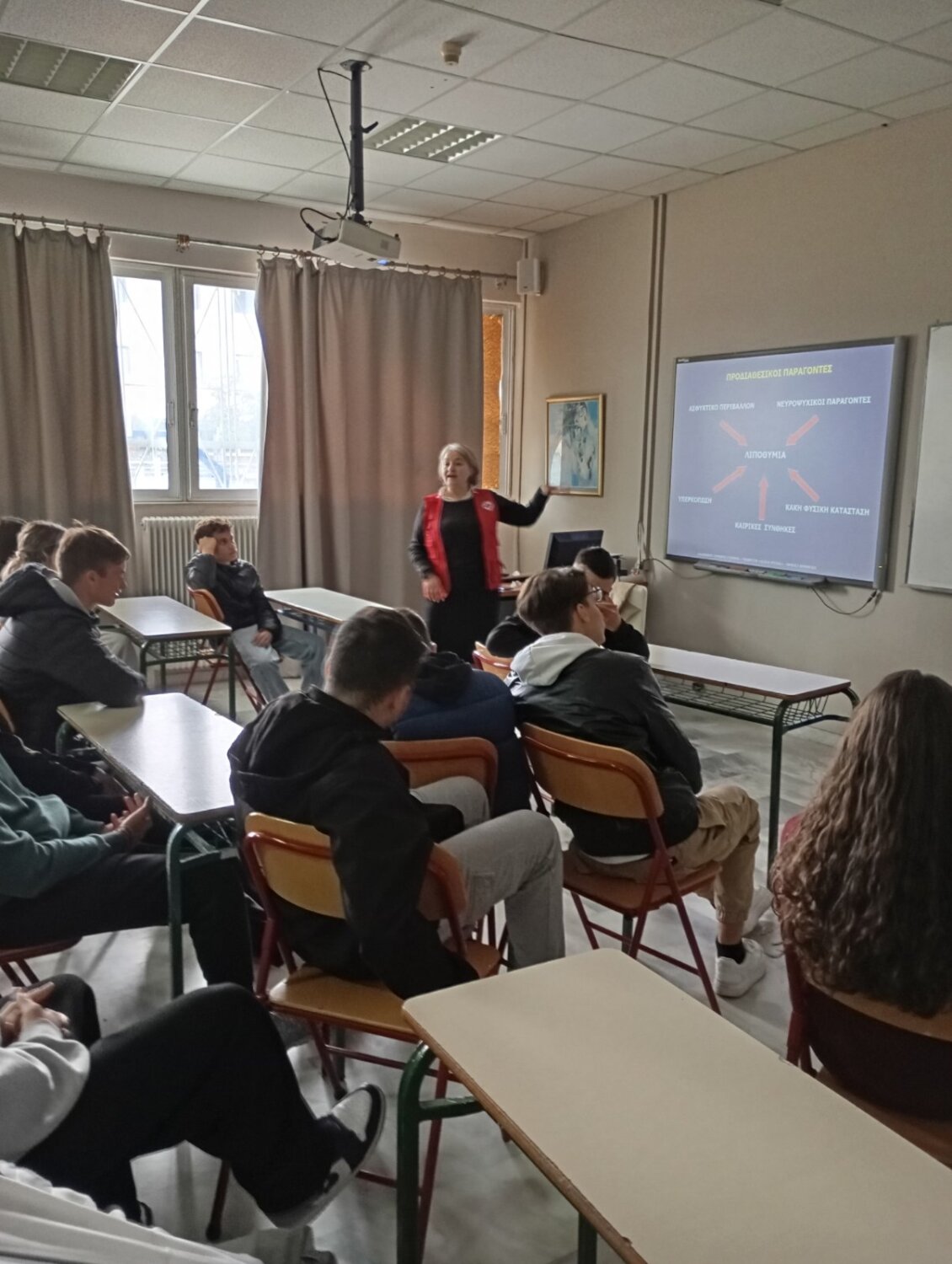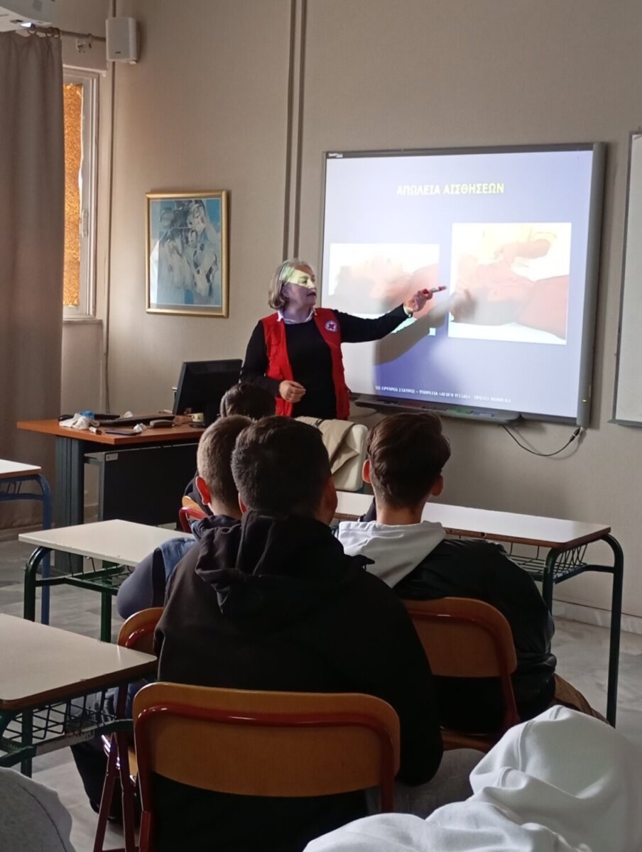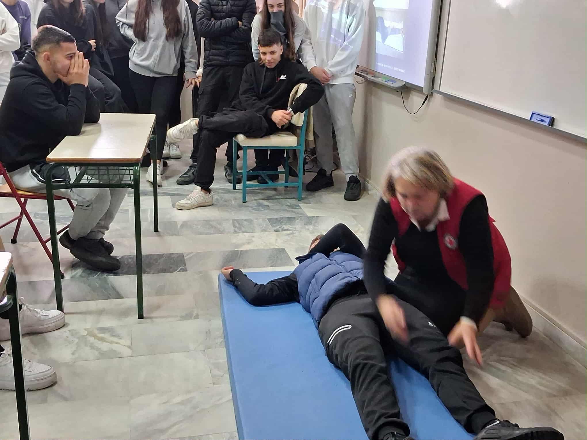Τη Δευτέρα 10 Νοεμβρίου 2025 η εκπρόσωπος του Ελληνικού Ερυθρού Σταυρού παραρτήματος Λάρισας κα Γιώτσα Χριστίνα ενημέρωσε τους μαθητές της Α΄ τάξης του σχολείου με θέμα: «Πρώτες βοήθειες για μαθητές». Η ενημέρωση ολοκληρώθηκε με συζήτηση και επίλυση αποριών.