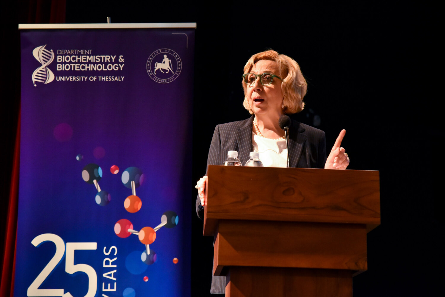 Η Πρόεδρος του Τμήματος, κ. Αικατερίνη Μούτου, επισήμανε με τη σειρά της την ανάγκη για μια συμπεριληπτική, διαφανή και ακέραια επιστήμη που εμπνέει δημόσια εμπιστοσύνη. Η εκδήλωση έδωσε την ευκαιρία και για έναν γόνιμο και ουσιαστικό διάλογο ανάμεσα στην κ. Σουφλέρη, τον Περιφερειάρχη Θεσσαλίας και το κοινό, σχετικά με τον ρόλο της επιστήμης και την επικοινωνία της με την κοινωνία, καθώς και για τη σημασία της ενεργούς συμμετοχής επιστημονικά ενημερωμένων πολιτών στη λήψη αποφάσεων που διαμορφώνουν το μέλλον.