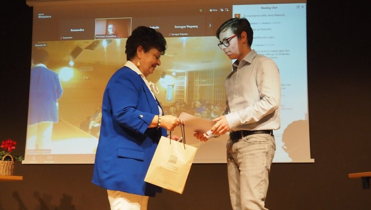 Η τελετή βράβευσης πραγματοποιήθηκε τη προηγουμένη Κυριακή στο Πολιτιστικό Κέντρο Ηρακλείου Κρήτης, με την παρουσία εκπροσώπων των διοργανωτών, εκπαιδευτικών, μαθητών και γονέων. Κατά τη διάρκεια της τελετής παρουσιάστηκαν δραματοποιημένα αποσπάσματα του βραβευμένων μονόπρακτων θεατρικών έργων.Το έργο του Λαρισαίου μαθητή του Προτύπου ΓΕΛ αναφέρεται στις συνθήκες της ανόδου του φασισμού στη Γερμανία του 20ου αιώνα, προσφέροντας μια προειδοποίηση για την πολιτική πραγματικότητα του σήμερα.