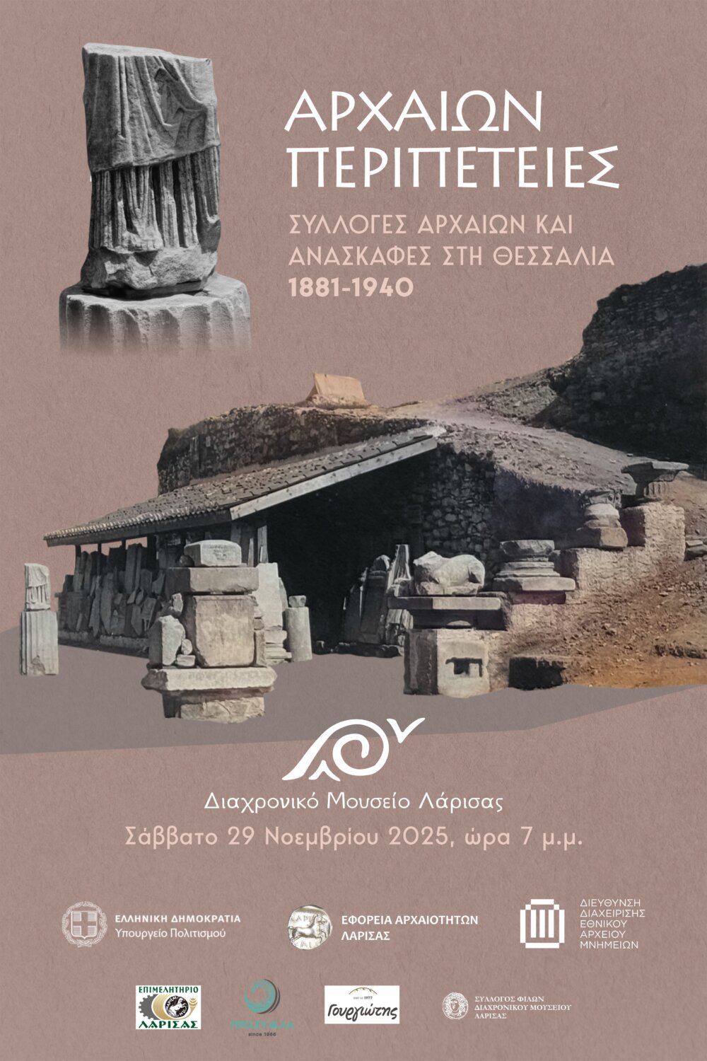 Η έκθεση με τίτλο «Αρχαίων Περιπέτειες. Συλλογές αρχαίων και ανασκαφές στη Θεσσαλία 1881-1940», παρουσιάζει στο κοινό τη συγκλονιστική ιστορία διάσωσης των αρχαιοτήτων στη Θεσσαλία την περίοδο αμέσως μετά την ενσωμάτωσή της στο νέο ελληνικό κράτος. Με άγνωστο αρχειακό υλικό και δανεισμό αρχαιοτήτων από το Εθνικό Αρχαιολογικό Μουσείο και το Αθανασάκειο Αρχαιολογικό Μουσείο Βόλου, αποτυπώνεται η μεγάλη προσπάθεια συγκέντρωσης των διάσπαρτων αρχαιοτήτων στη Λάρισα, τον Τύρναβο, την Ελασσόνα και την Αγιά καθώς και η ίδρυση των πρώτων «Μουσείων». Παράλληλα, παρουσιάζονται οι αρχές των ανασκαφικών ερευνών στην περιοχή από Έλληνες και ξένους αρχαιολόγους, τα ευρήματα των οποίων εμπλούτισαν τις αρχαιολογικές συλλογές.
