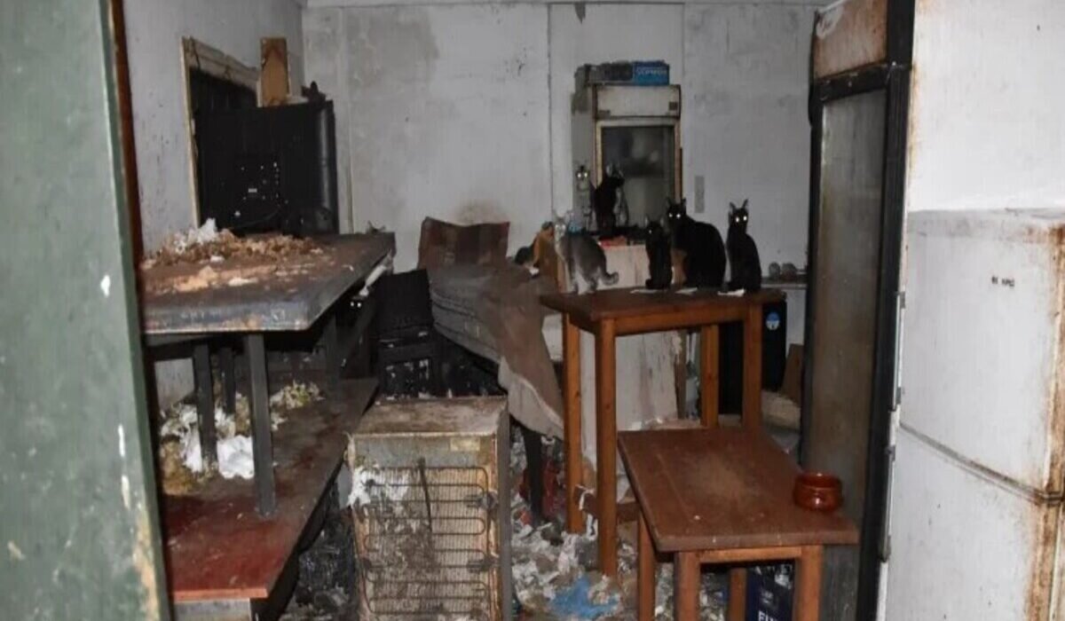 Σε φωτογραφίες που είδαν το φως της δημοσιότητας, απεικονίζονται οι γάτες που ζούσαν κλειδωμένες και υποσιτισμένες μέσα σε σκουπίδια.