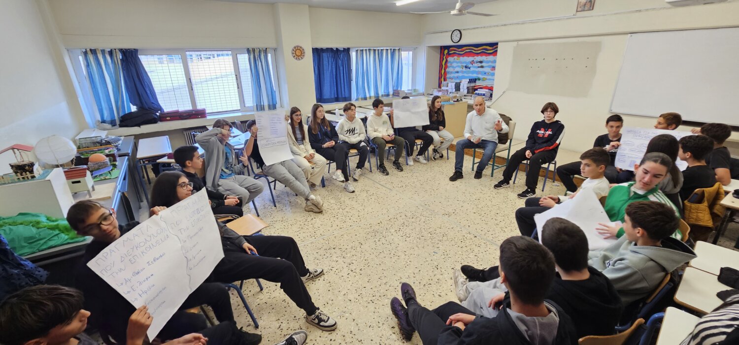 Ακολούθησε συζήτηση σχετικά με την ουσιαστική επικοινωνία, όπου οι μαθητές εξέφρασαν και κατέγραψαν τις απόψεις τους γύρω από τις αξίες, το πλαίσιο και τους τρόπους επικοινωνίας – τόσο λεκτικούς όσο και μη λεκτικούς.