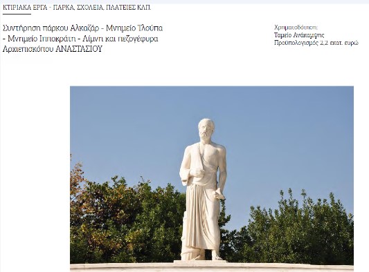 Θέλω να επισημάνω με τούτα, ότι η πόλη άνοιξε δρόμους με συνέργειες, σε δύσκολους καιρούς, με περιοριστικές πολιτικές για την αυτοδιοίκηση. Ο απόηχος αυτών των συνεργειών ξεπέρασε τα όρια της πόλης, όπως με τις ετήσιες εκδηλώσεις για τον Ιπποκράτη, άμεσα συνδεδεμένες με το έργο που εγκαινιάζεται σήμερα, μας έφερε σε επαφή με προσωπικότητες και φορείς διεθνούς κύρους.