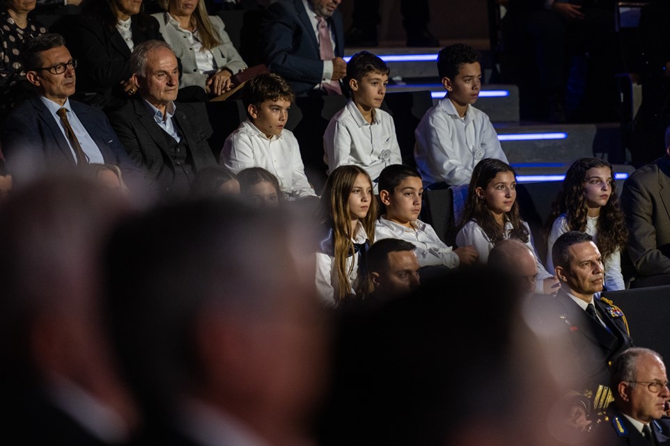Αριστούχοι μαθητές και μαθήτριες, μαζί με τους εκπαιδευτικούς τους, εκπροσωπώντας τα πληγέντα σχολεία της Θεσσαλίας, που ανακατασκευάστηκαν και αναβαθμίστηκαν στο πλαίσιο του σχεδίου δράσης της ΕΕΕ, έδωσαν το «παρών» στην εκδήλωση. Ιδιαίτερα συγκινητική στιγμή όταν τρεις μαθητές του Γυμνασίου Φαρκαδόνας Τρικάλων, του Γιώργου Αργύρη, της Μαρίζας Μπαγιώτη και του Βασίλη Κουνή, πήραν τον λόγο, ερχόμενοι από την περιοχή της οποίας όλα τα σχολεία αγκαλιάστηκαν από το σχέδιο δράσης «Άγιος Νικόλαος», αφού είχαν καταστραφεί.