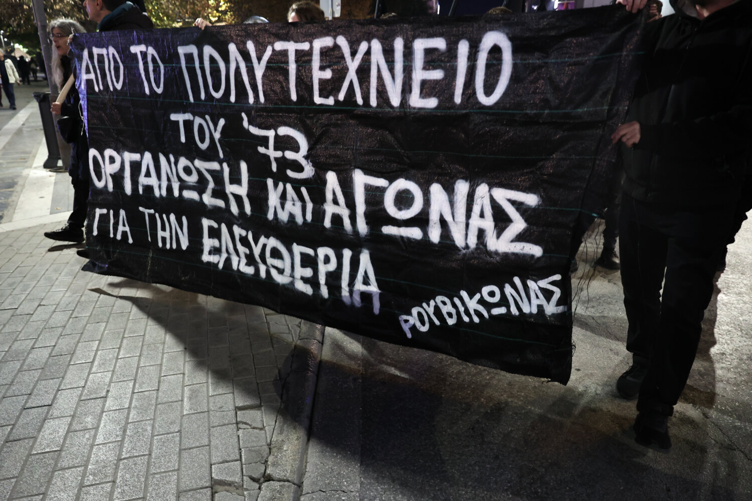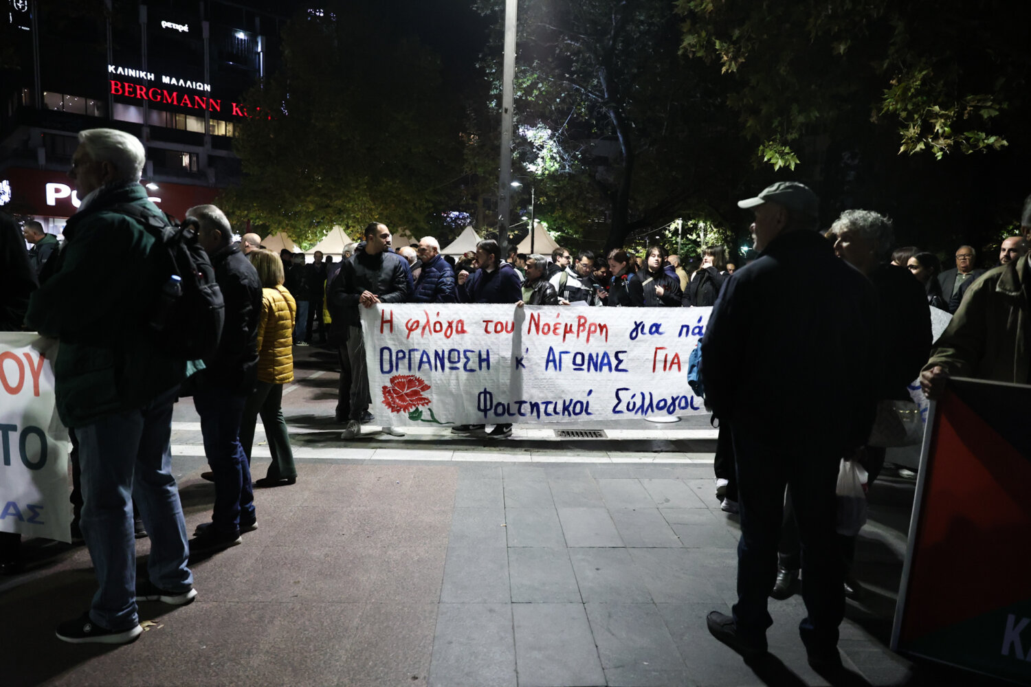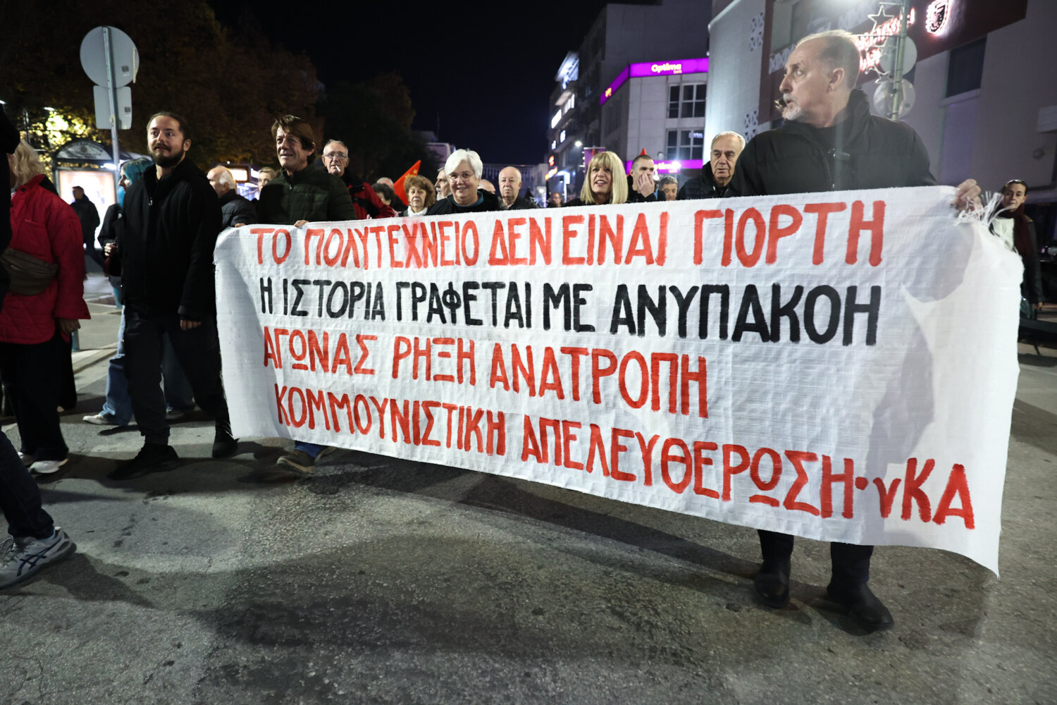 Δυναμικό παρών έδωσαν το βράδυ της Δευτέρας στην συγκέντρωση και πορεία της Κεντρικής Πλατείας οι Λαρισαίοι τιμώντας με αυτόν τον τρόπο την 52η επέτειο από την εξέγερση του Πολυτεχνείου.