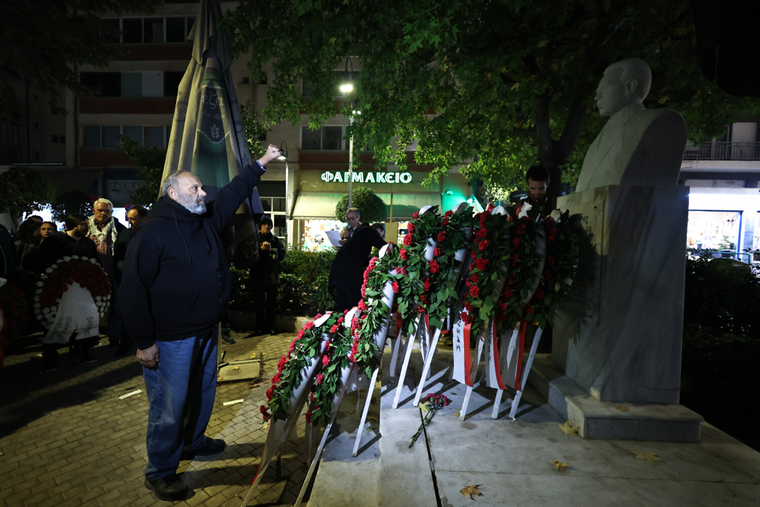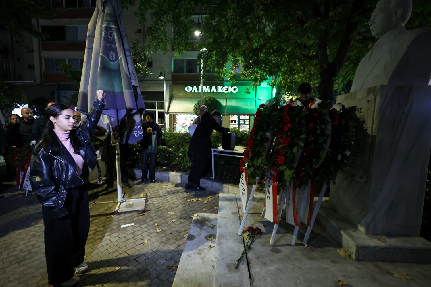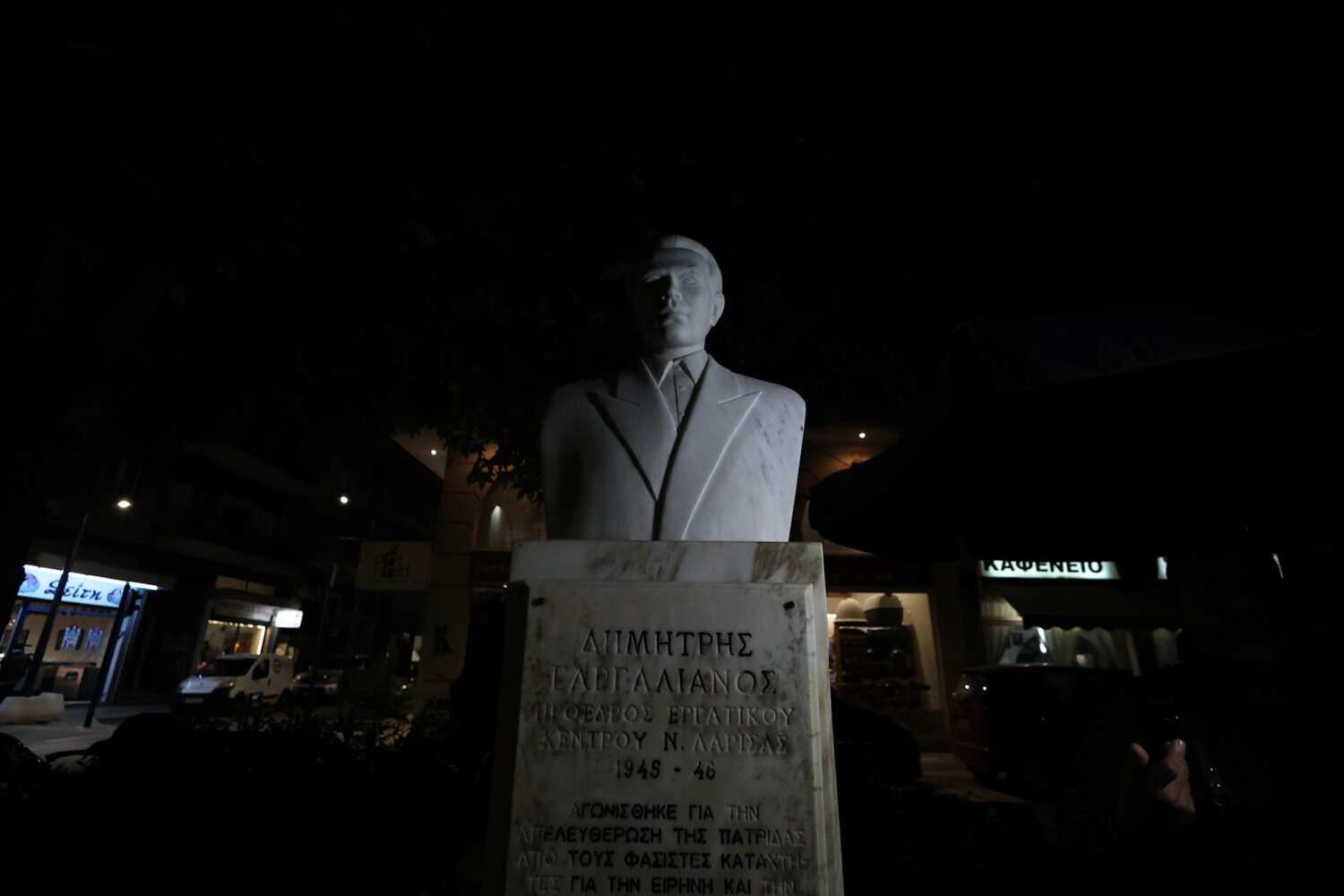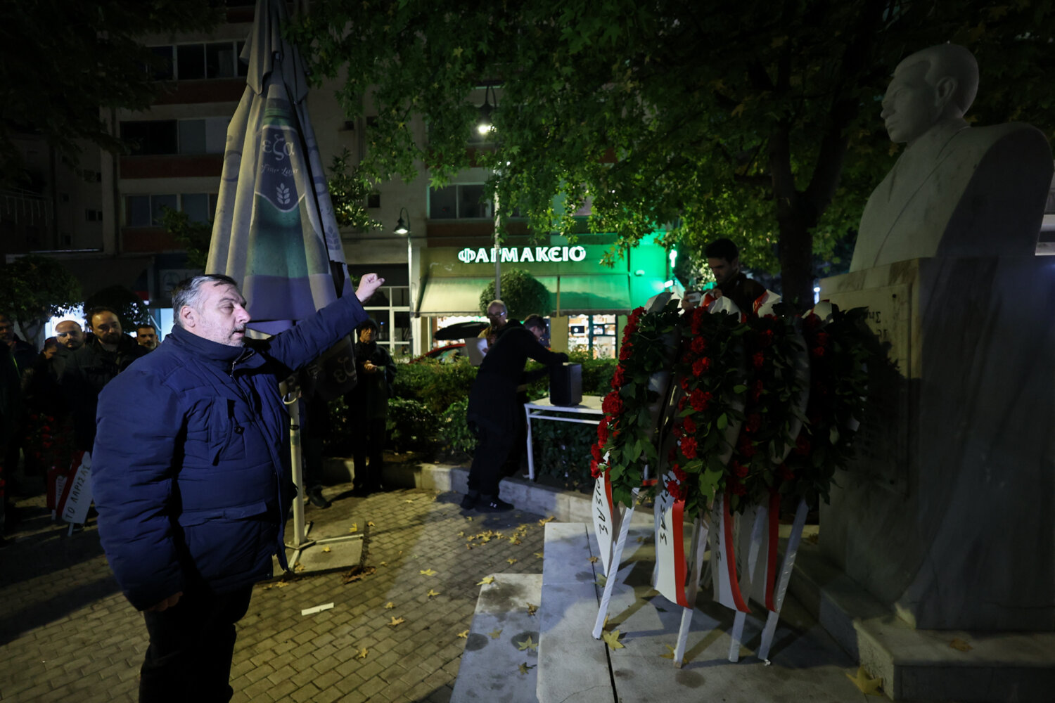 Το απόγευμα της Δευτέρας πραγματοποιήθηκε κατάθεση στεφάνων στην πλατεία Τάκη Γαργαλιάνου από το Εργατικό Κέντρο Λάρισας και άλλους φορείς της πόλης.