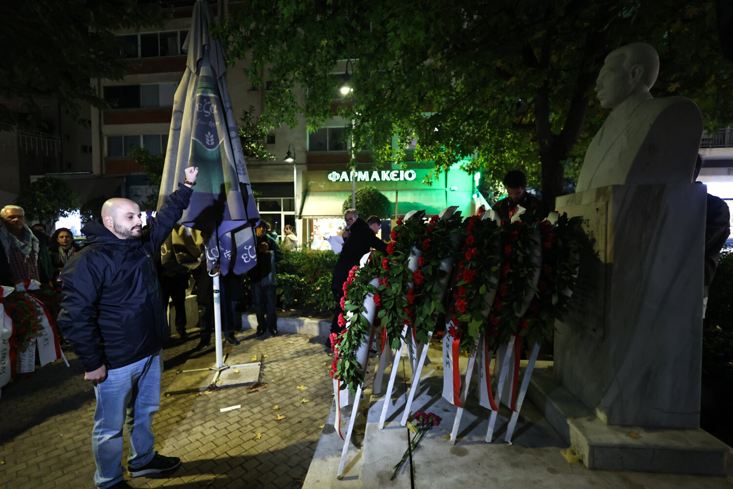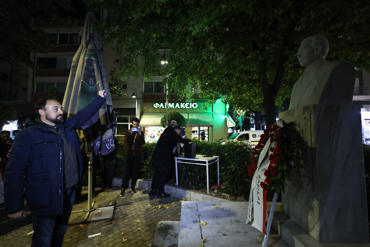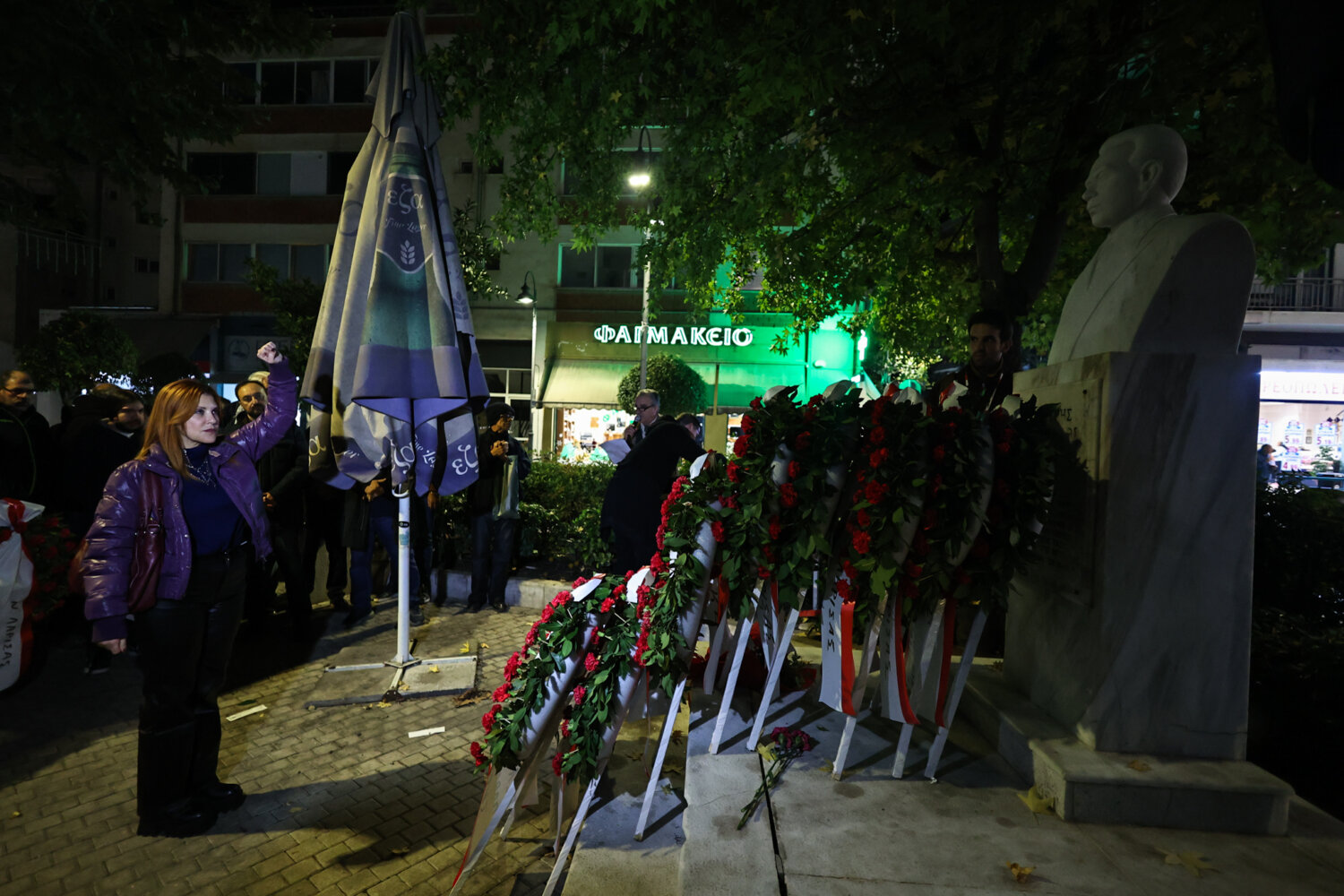 Το απόγευμα της Δευτέρας πραγματοποιήθηκε κατάθεση στεφάνων στην πλατεία Τάκη Γαργαλιάνου από το Εργατικό Κέντρο Λάρισας και άλλους φορείς της πόλης.