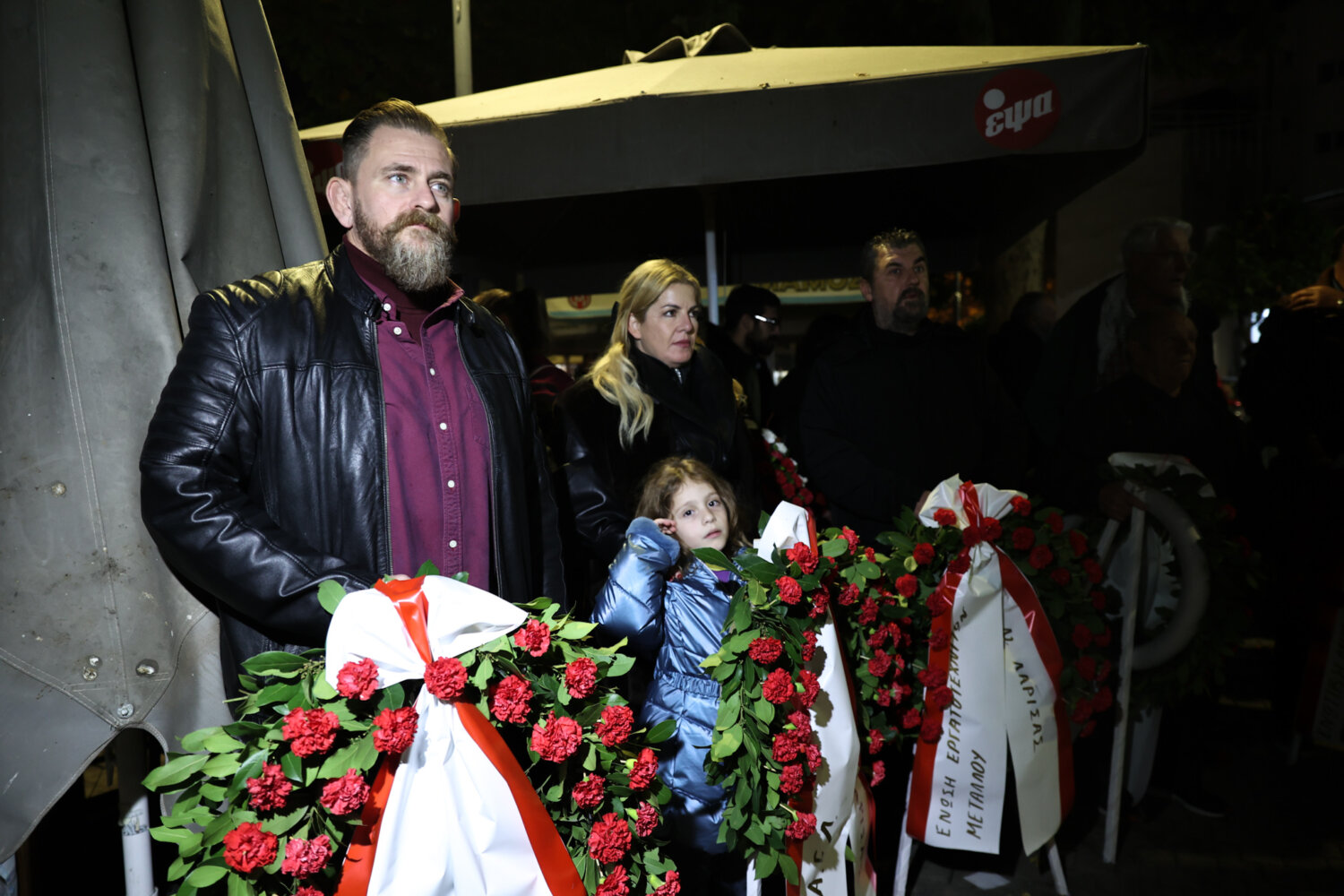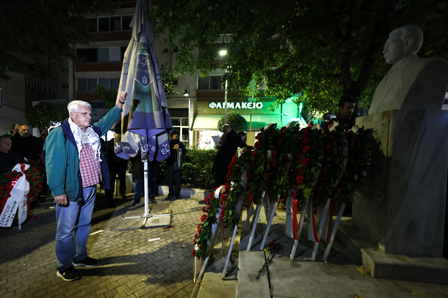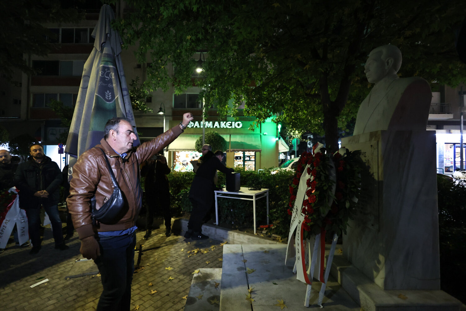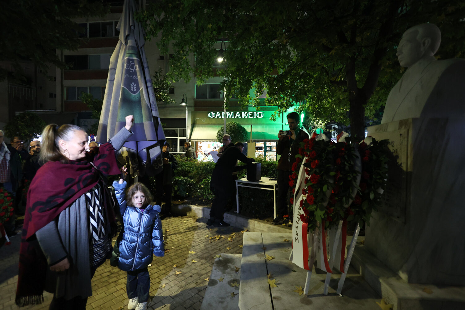 Το απόγευμα της Δευτέρας πραγματοποιήθηκε κατάθεση στεφάνων στην πλατεία Τάκη Γαργαλιάνου από το Εργατικό Κέντρο Λάρισας και άλλους φορείς της πόλης.