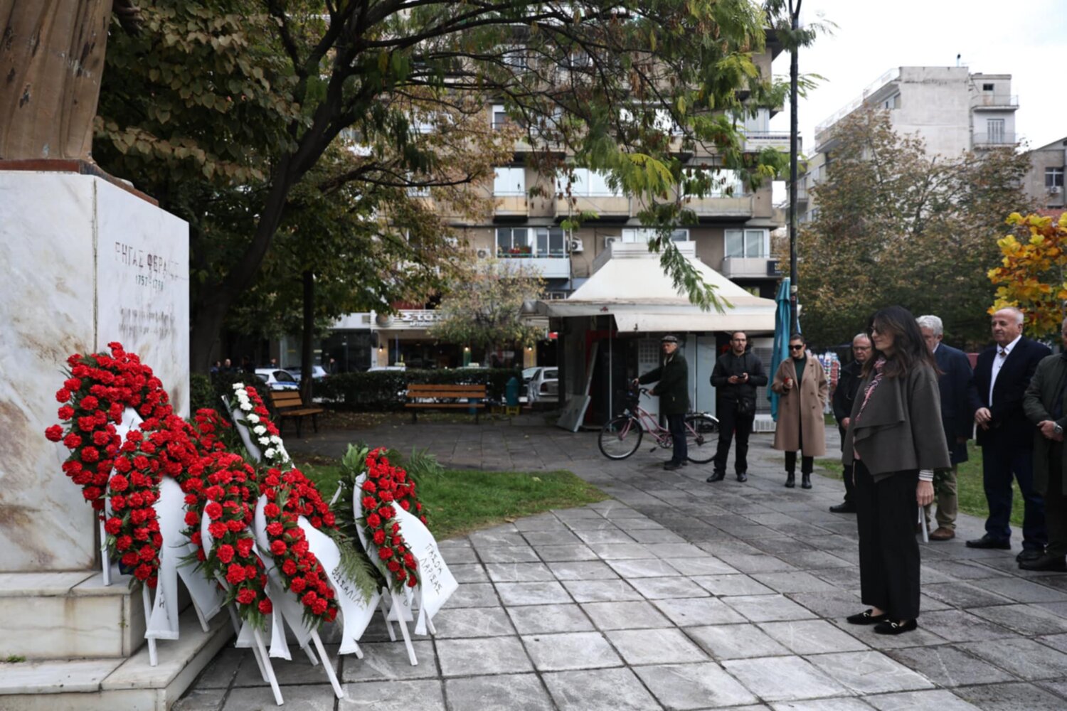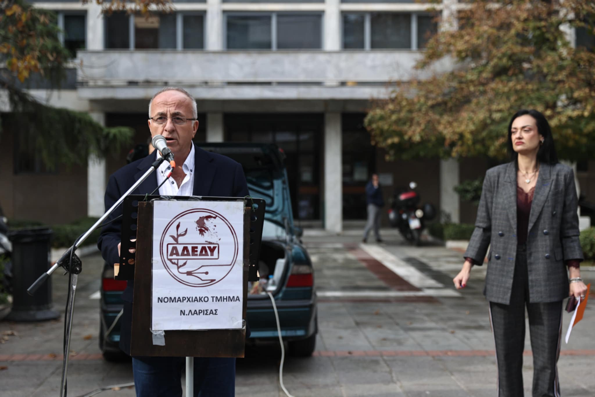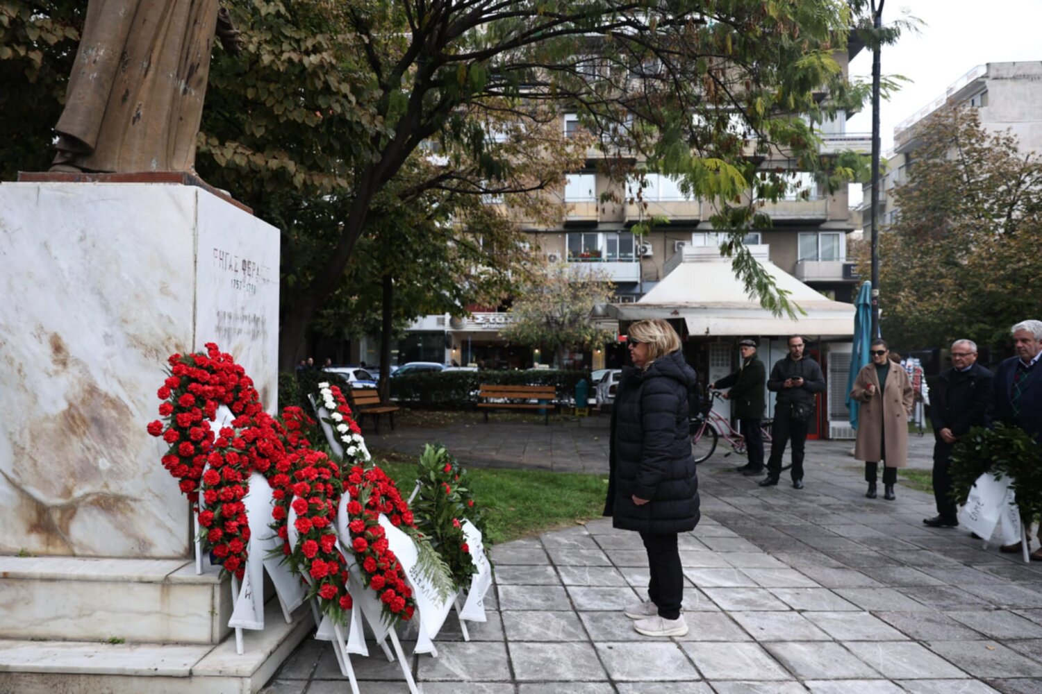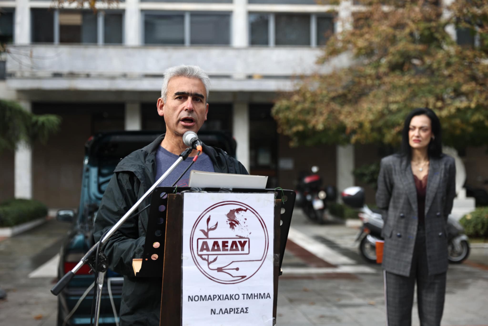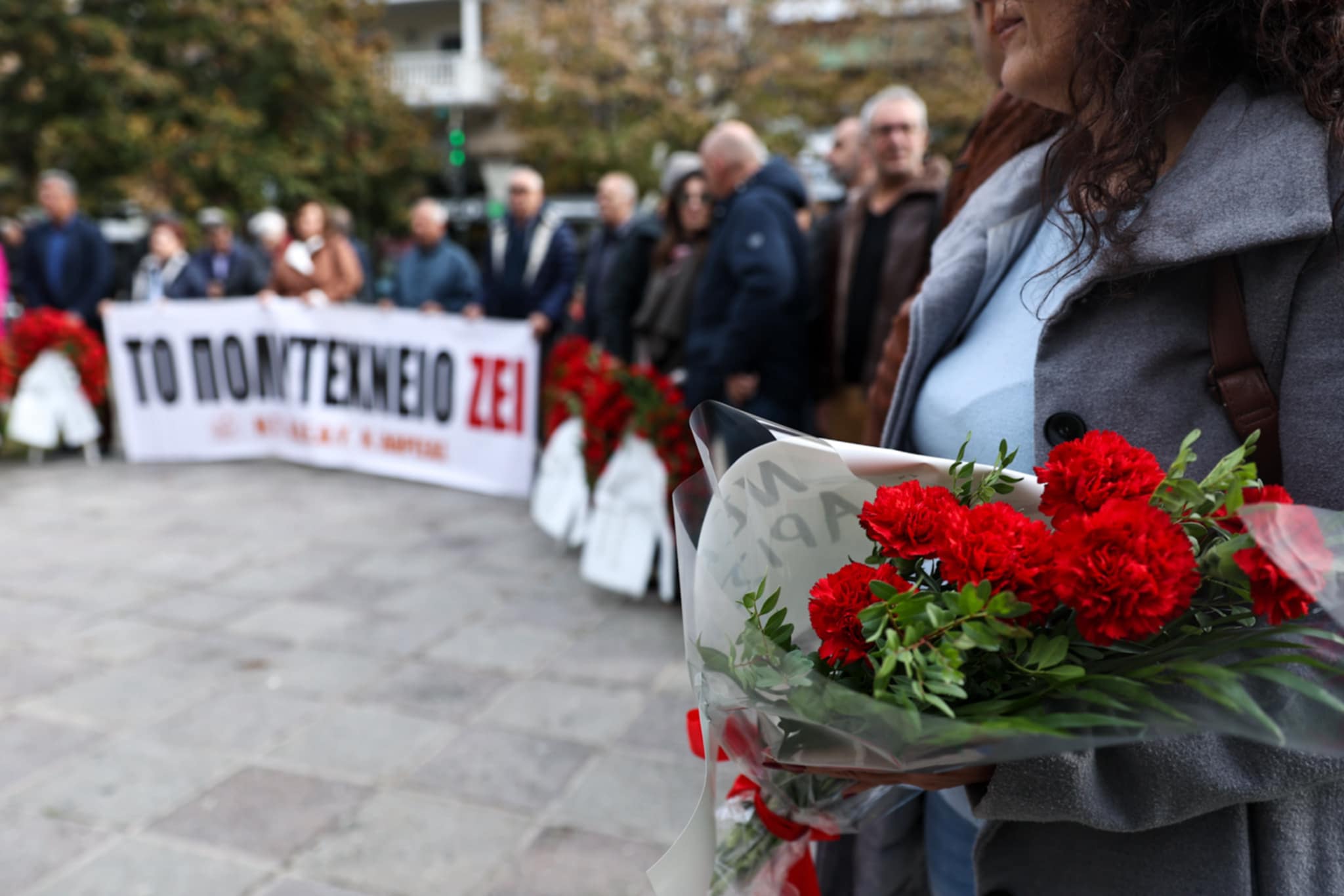 Λίγο μετά τις 11 το πρωί Πρωτοβάθμια Σωματεία-μέλη της, φορείς, συνταξιούχοι συμμετείχαν στην συγκέντρωση-κατάθεση στεφάνων στην πλατεία μπροστά από το κτίριο της Περιφέρειας στη Λάρισα.