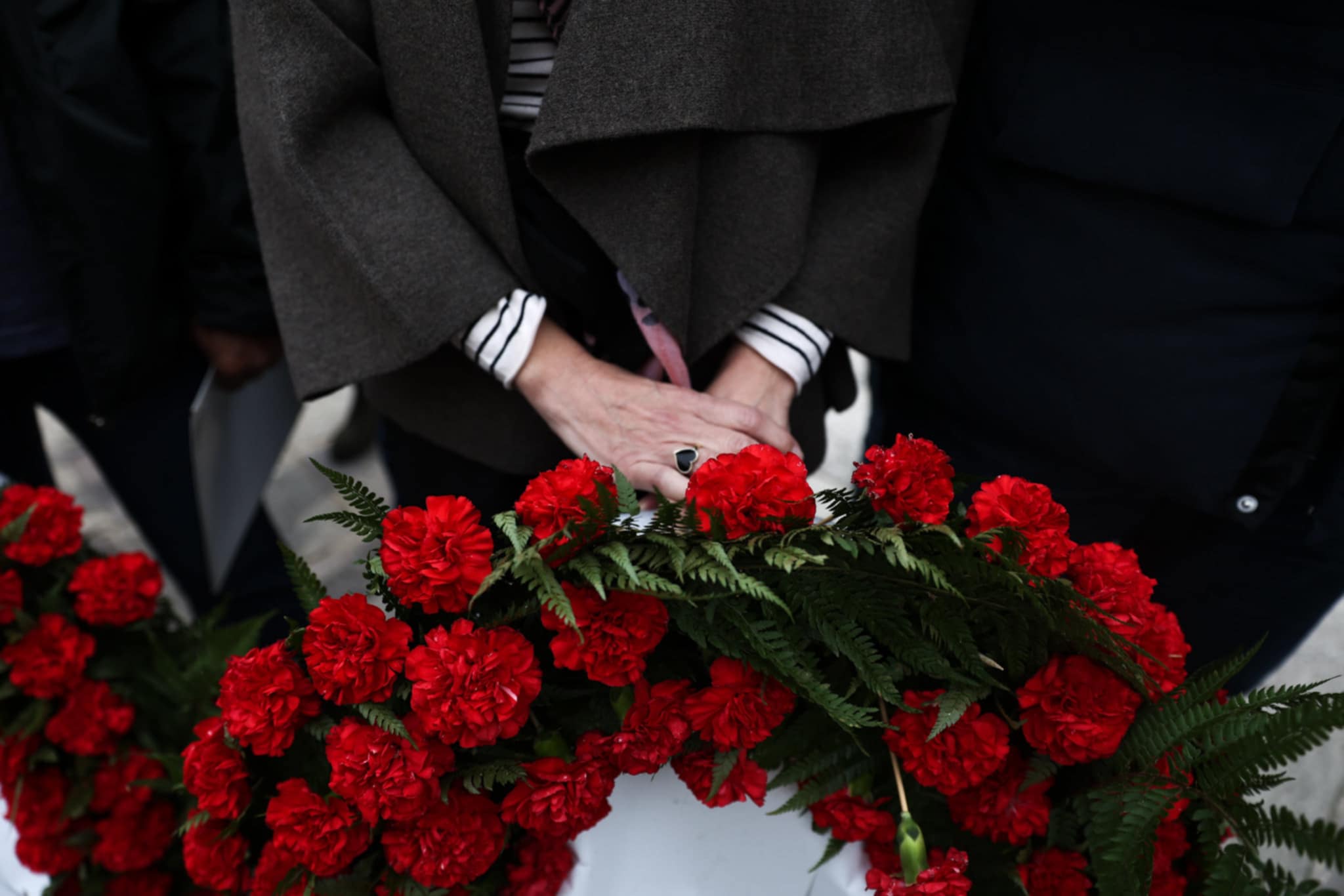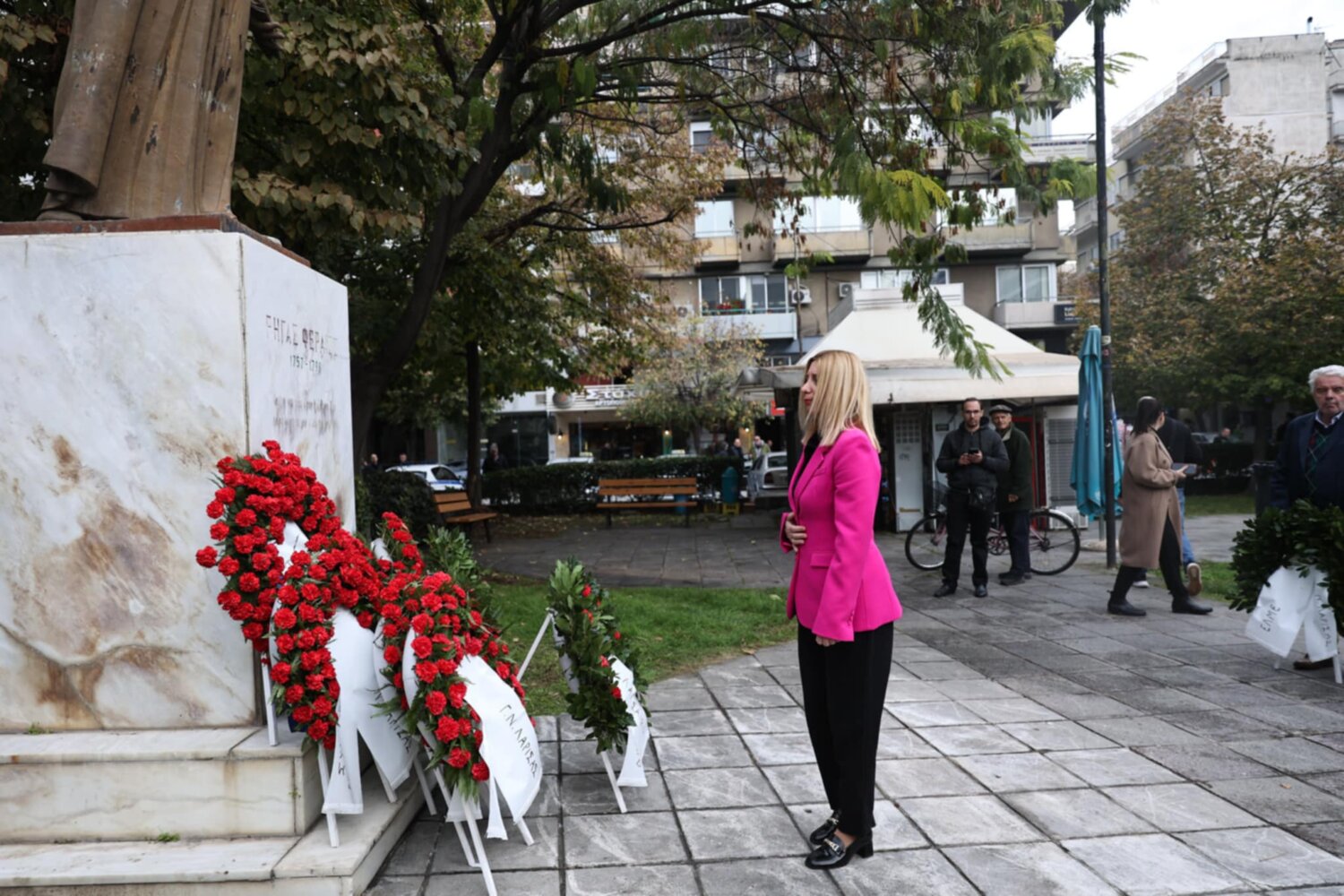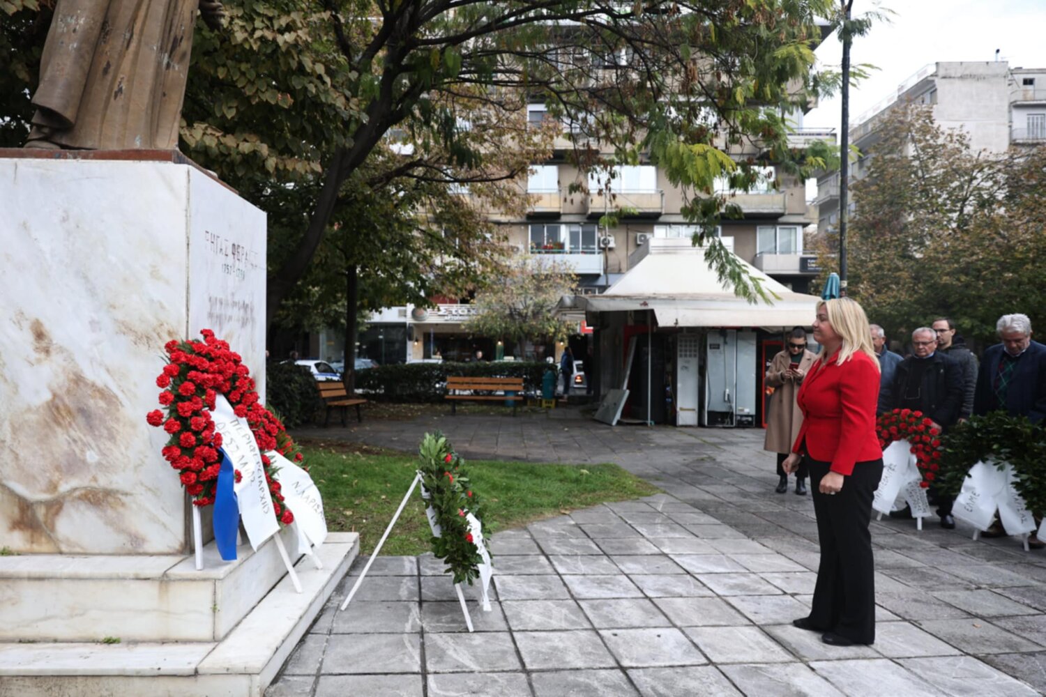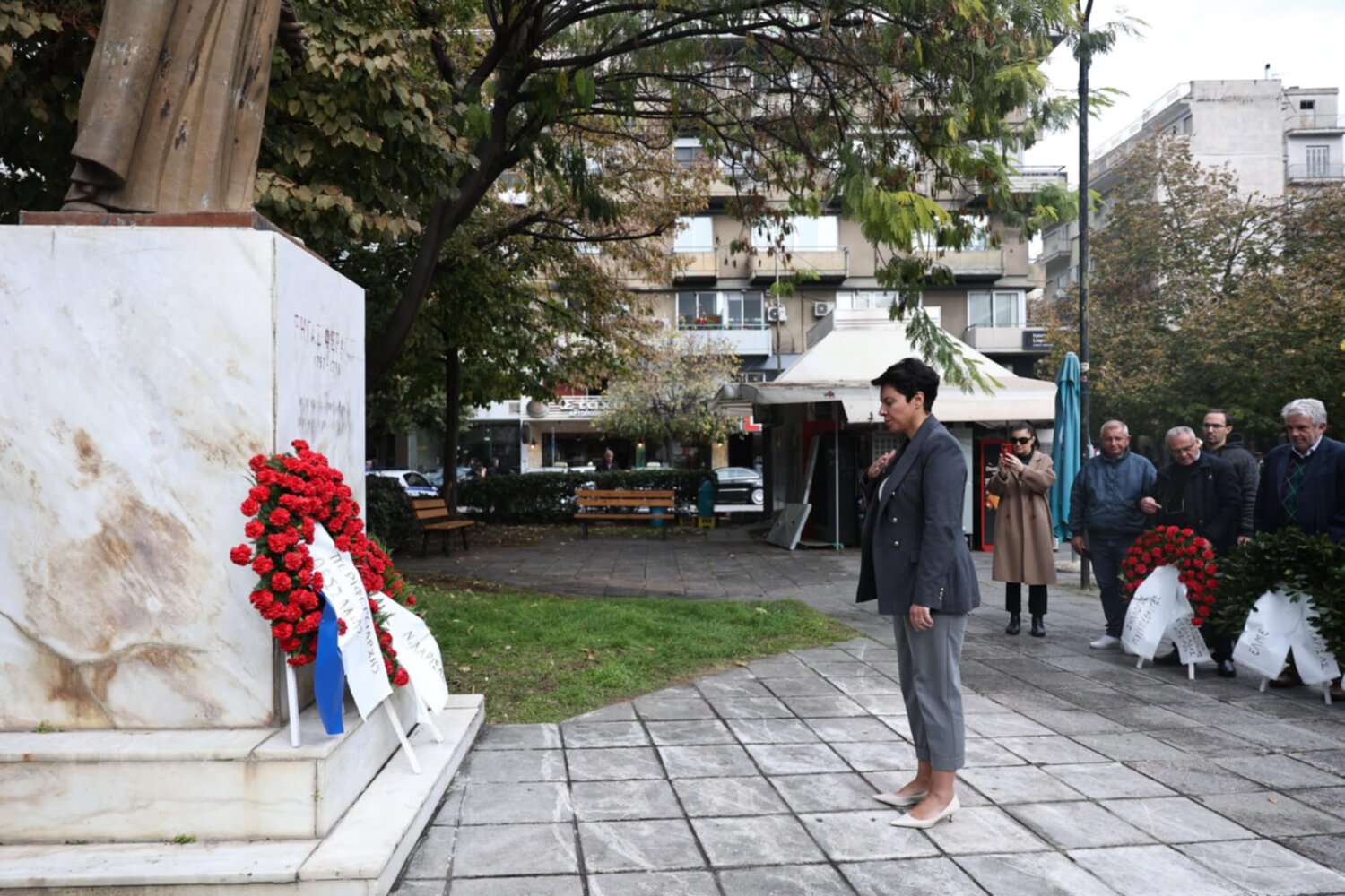 Λίγο μετά τις 11 το πρωί Πρωτοβάθμια Σωματεία-μέλη της, φορείς, συνταξιούχοι συμμετείχαν στην συγκέντρωση-κατάθεση στεφάνων στην πλατεία μπροστά από το κτίριο της Περιφέρειας στη Λάρισα.