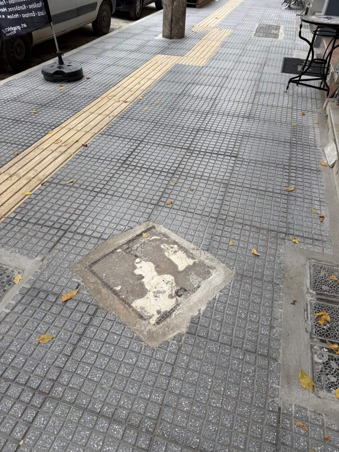 «Οι φωτό είναι από το καινούργιο πεζοδρόμιο που μας παραδώσανε προχθές στην Ανθίμου Γαζη!