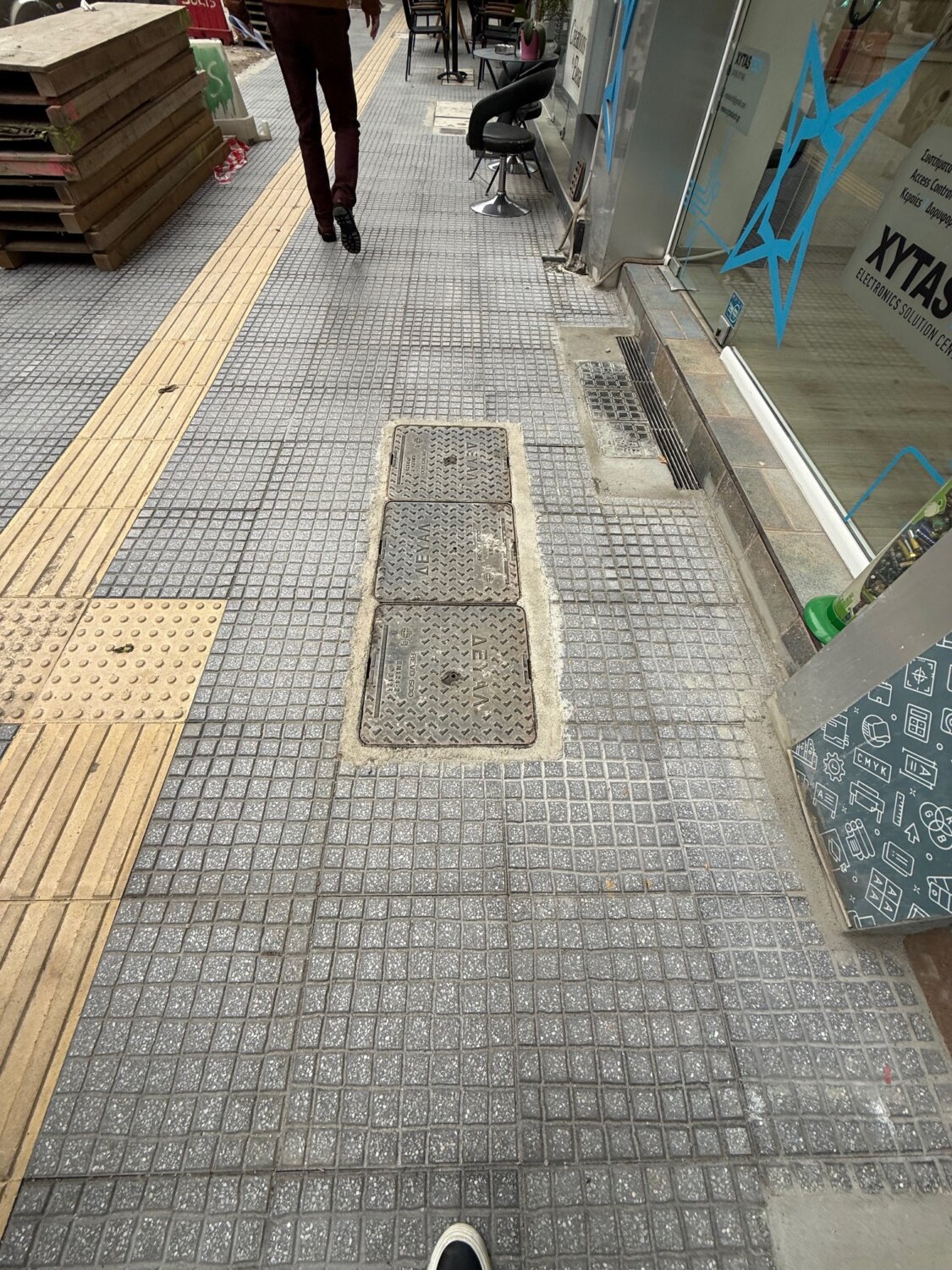 Με σκωπτικό τρόπο σχολιάζει συμπολίτης την κατάσταση στα νέα πεζοδρόμια της Ανθίμου Γαζή, καθώς μπορεί οι κατασκευές να είναι καινούργιες, όμως τα καπάκια των φρεατίων έχουν μια διαφορετική εικόνα.