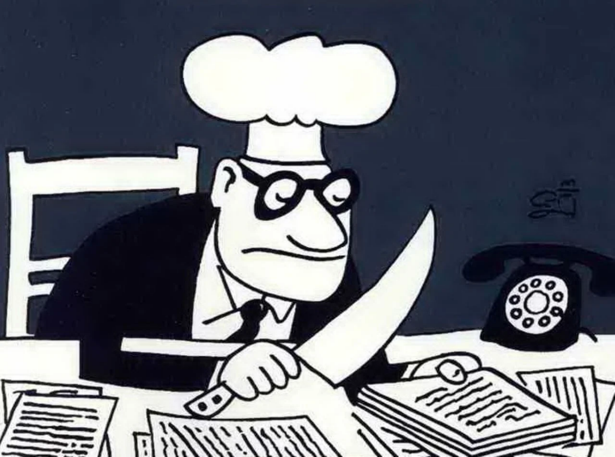 Στο εξώφυλλο του βιβλίου του Δημήτρη Κουμπιά – βετεράνου της δημοσιογραφίας από «Ελευθερία» και «Απογευματινή» μέχρις «Ελευθεροτυπίας», «Έθνους» και «Ναυτεμπορικής» –ο συντάκτης ύλης, τον οποίο γνώρισε καλά ο ίδιος, απεικονίζεται ανάμεσα σε στοίβες χειρόγραφων να κραδαίνει μια μαχαίρα, φορώντας σκούφο μάγειρα και με το παλιοκαιρινό τηλέφωνο δίπλα του. Η απεικόνιση έχει την σημασία της: Ο υλατζής παραλαμβάνει τα χειρόγραφα (όταν υπήρχαν τα χειρόγραφα, βέβαια, τώρα όλα στην οθόνη), διαμορφώνει, κόβει-ράβει, ελέγχει (ακόμη και πραγματολογικά), εν πολλοίς τιτλοφορεί, προωθεί στην σελιδοποίηση. Δηλαδή «φτιάχνει» την εφημερίδα.