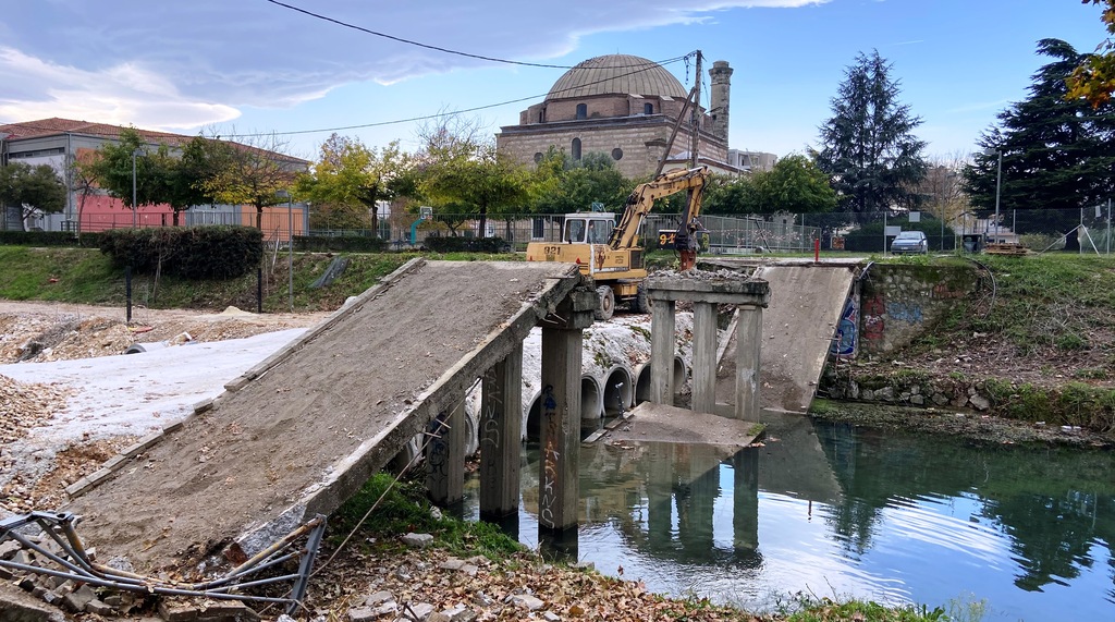 Μια ιστορική στιγμή για τις γέφυρες των Τρικάλων η 17η Νοεμβρίου 2025. Η σημερινή μορφή (από το 1961) της πεζογέφυρας του Αγίου Κωνσταντίνου αποτελεί παρελθόν, καθώς η εταιρεία που έχει αναβάλει το μεγάλο έργο της αποκατάστασης και συντήρησης των 13 γεφυριών της πόλης (ΒΕΡΜΙΟΝ ΑΤΕ), προέβη στον γκρέμισμά της.