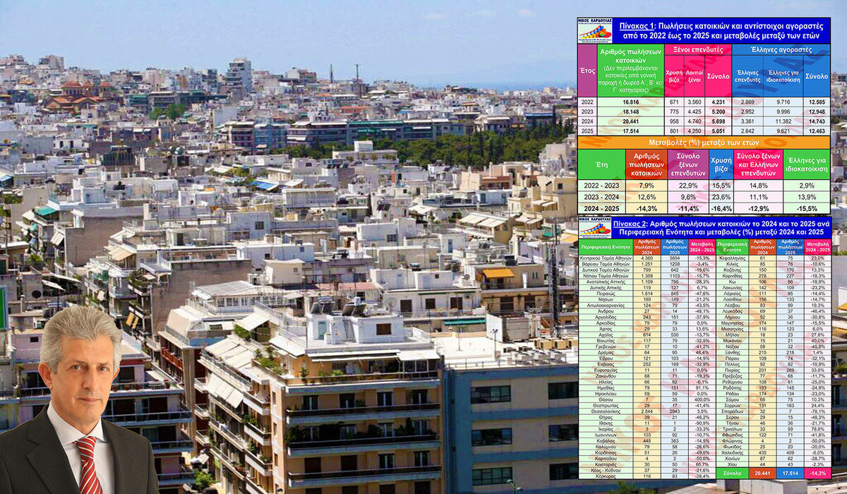 - Ενώ μέσα στο το 2025 θα έχουν αγορασθεί 5.430 κατοικίες με το πρόγραμμα «Σπίτι Μου ΙΙ», από τις συνολικά 9.621 κατοικίες που αγόρασαν Έλληνες για ιδιοκατοίκηση, παρατηρήθηκε γενική μείωση των πωλήσεων κατά 14,3% σε σχέση με το 2024 και μείωση κατά 15,5% των αγορών για ιδιοκατοίκηση.