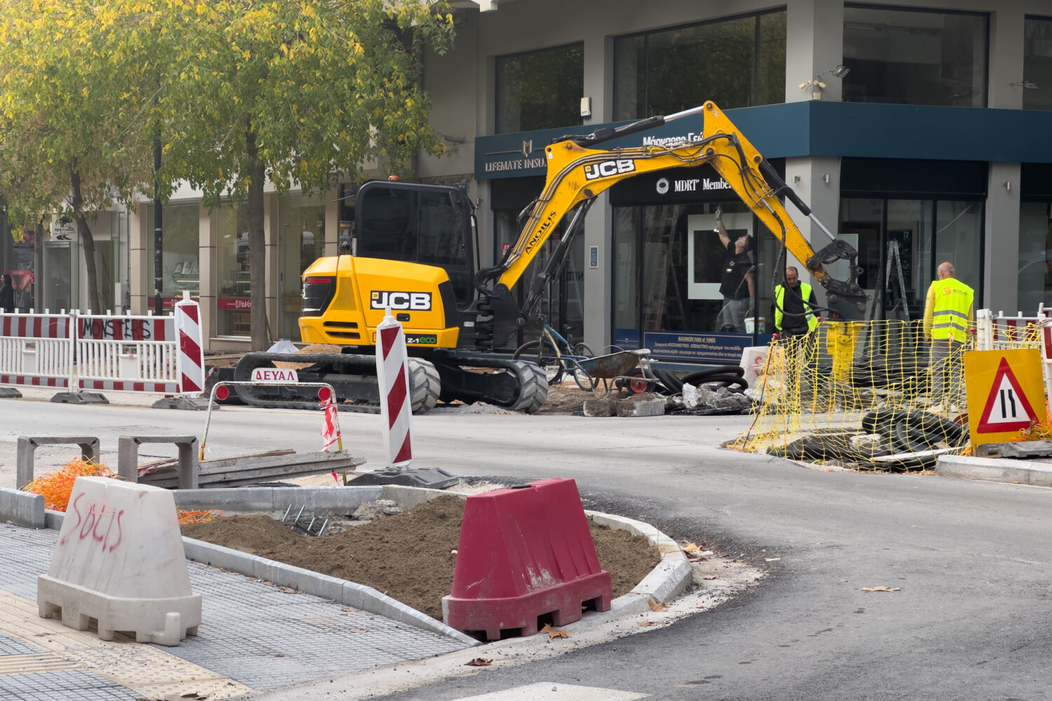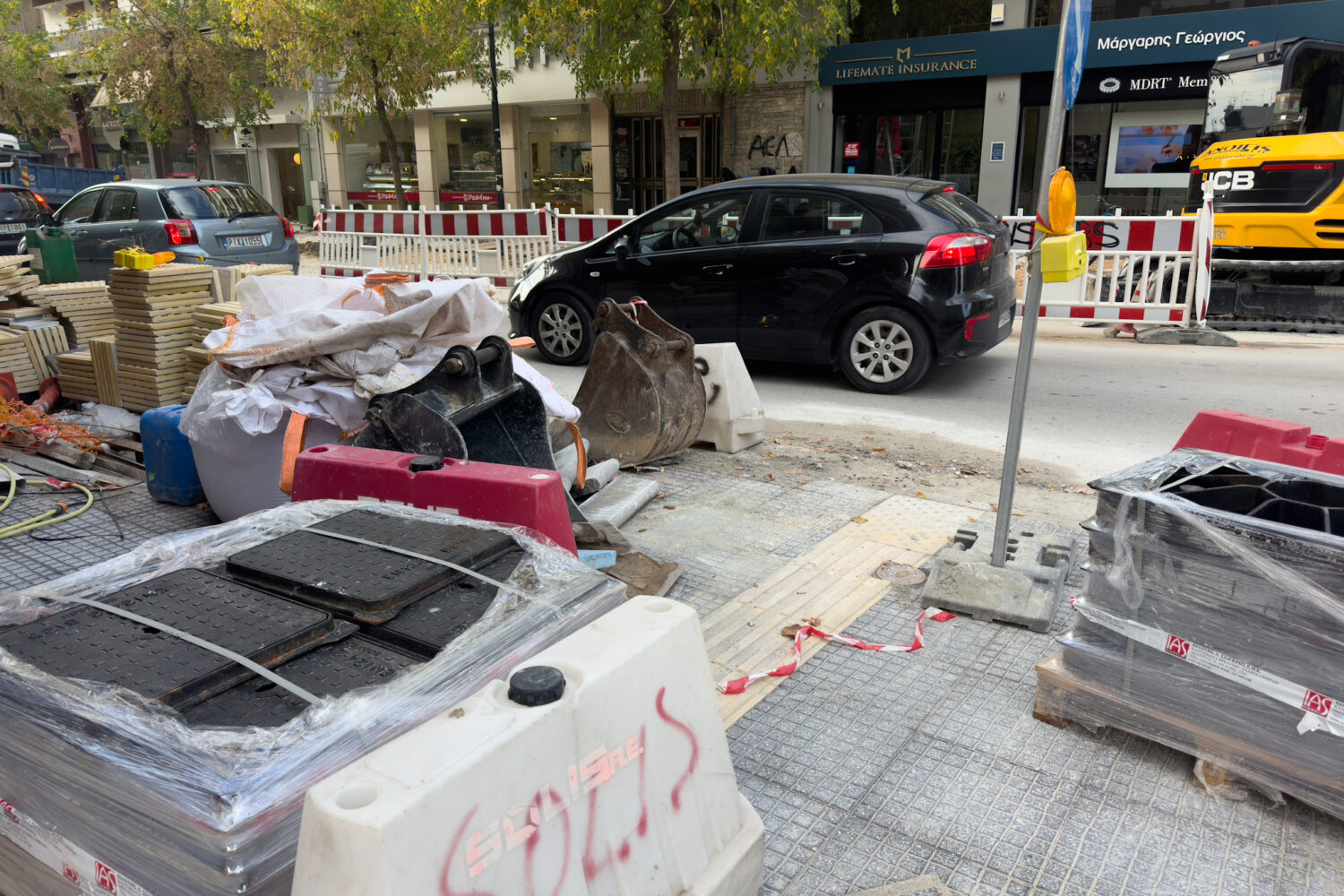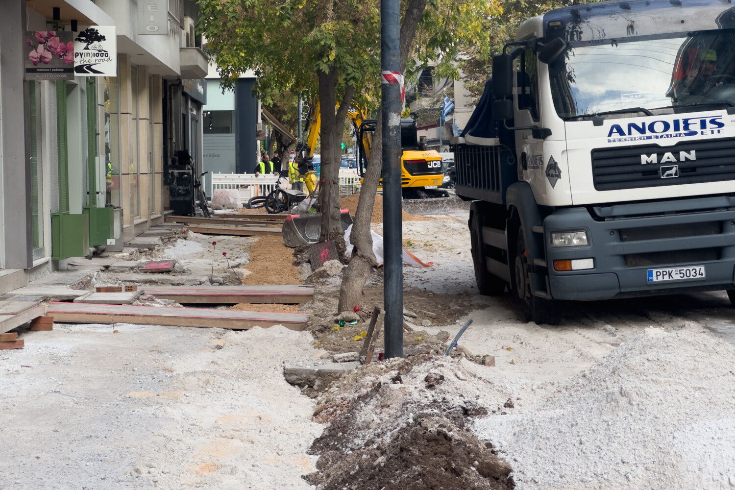 Εργοτάξιο συνεχίζει να παραμένει η Ανθίμου Γαζή στη Λάρισα με τα συνεργεία να διαμορφώνουν το δρόμο με τα νέα σχέδια από την Αθ. Διάκου έως την Κουμουνδούρου.