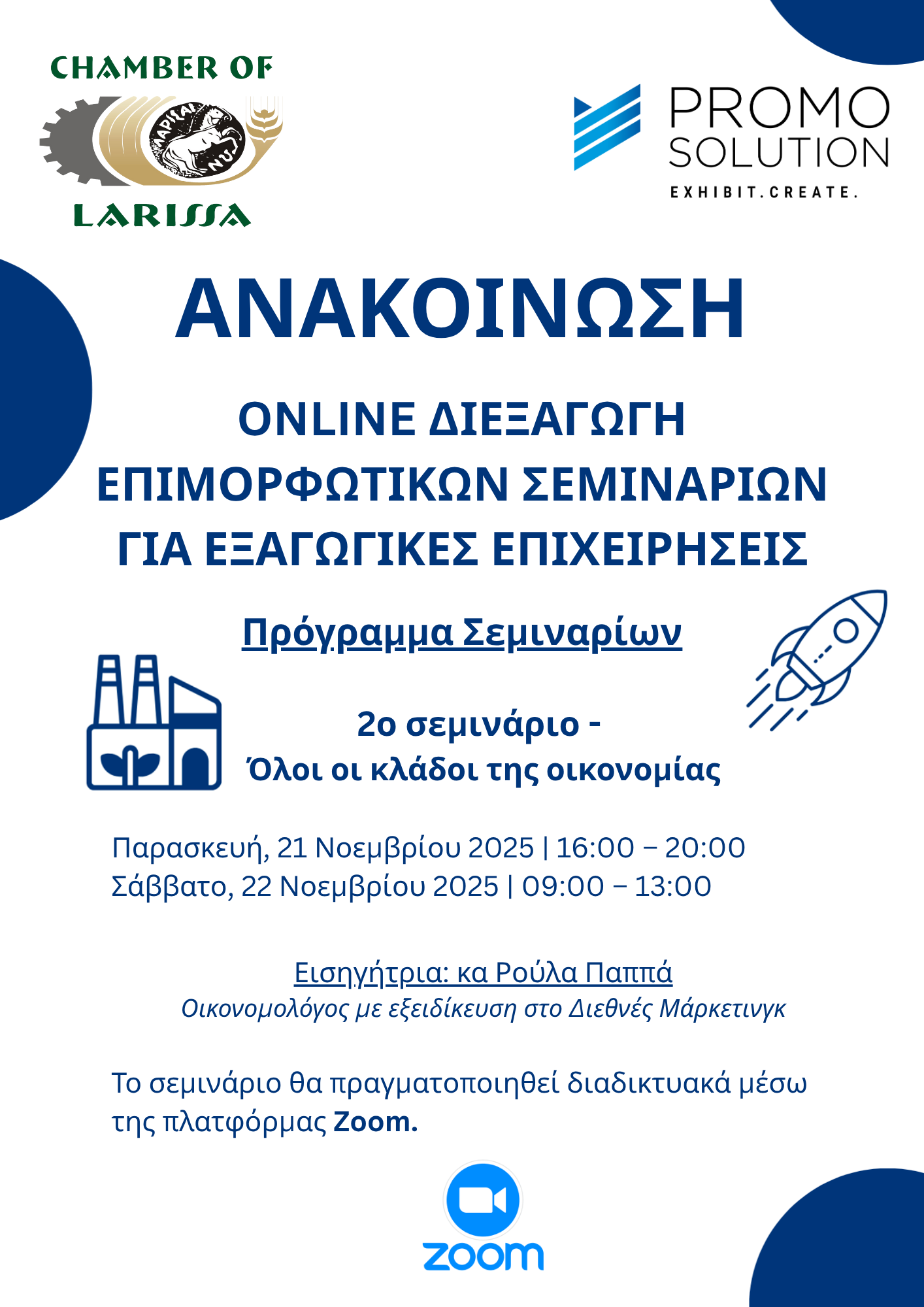 Το 2o σεμινάριο εξαγωγών θα πραγματοποιηθεί διαδικτυακά λόγω προσωπικού κωλύματος της εισηγήτριας.