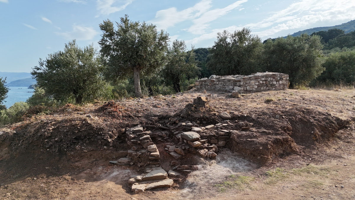 Τέλος, στη βορειοανατολική άκρη της οχύρωσης του οικισμού αποκαλύφθηκε γωνία δύο κτιρίων των ελληνιστικών χρόνων, τα οποία χωρίζονται μεταξύ τους με στενό διάδρομο. Από τον χώρο συγκεντρώθηκαν ενσφράγιστες λαβές αμφορέων και σημαντική ποσότητα οστράκων αγγείων.