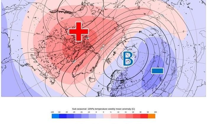 Ένα τέτοιο σενάριο θα μπορούσε να οδηγήσει σε σύντομα αλλά έντονα κύματα ψύχους και κακοκαιρίας σε τμήματα της Ευρώπης και ενδεχομένως και της Ελλάδας κατά το δεύτερο μισό του μήνα.