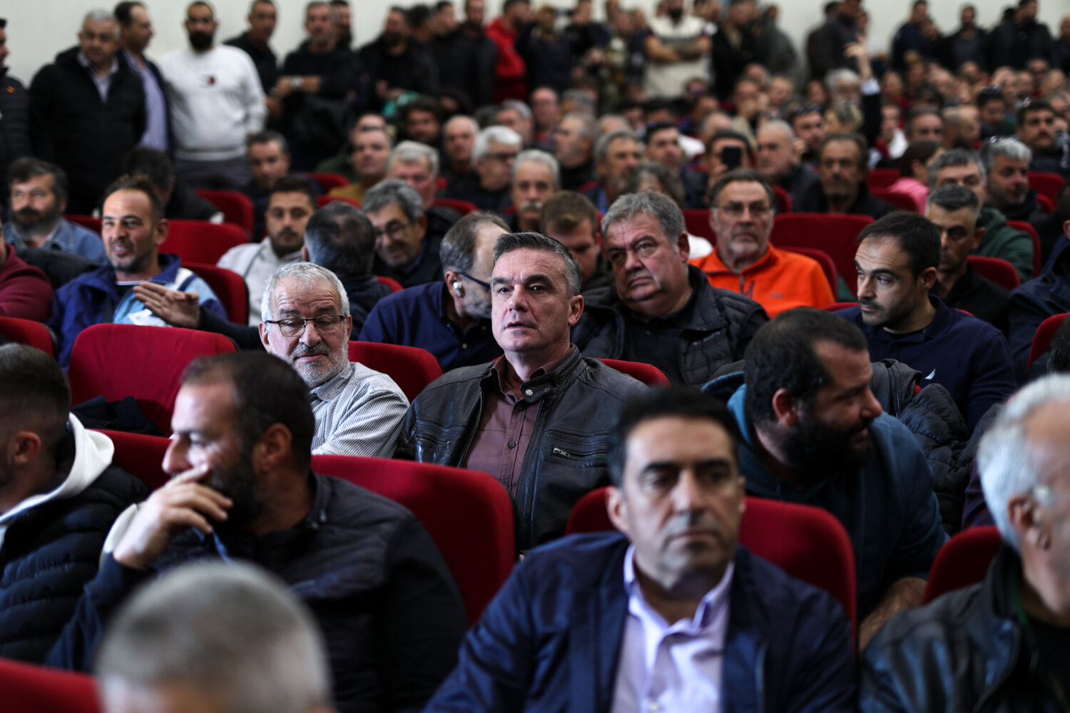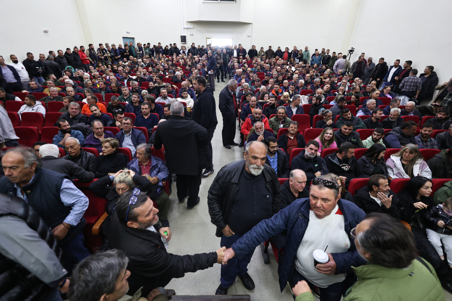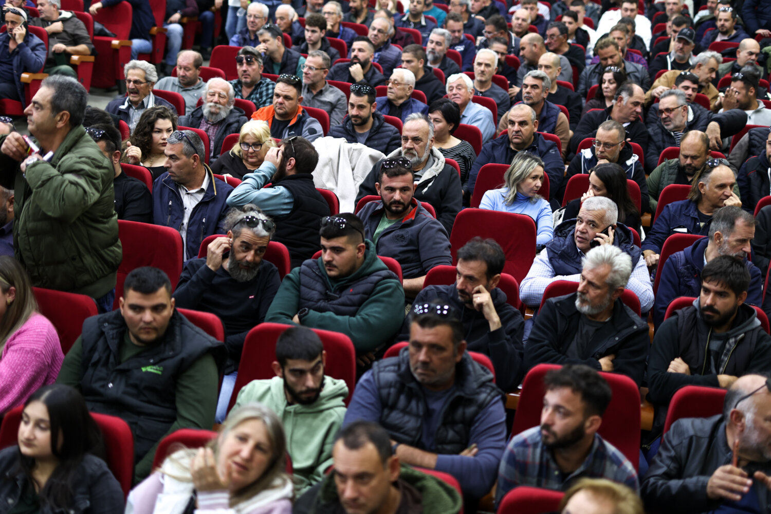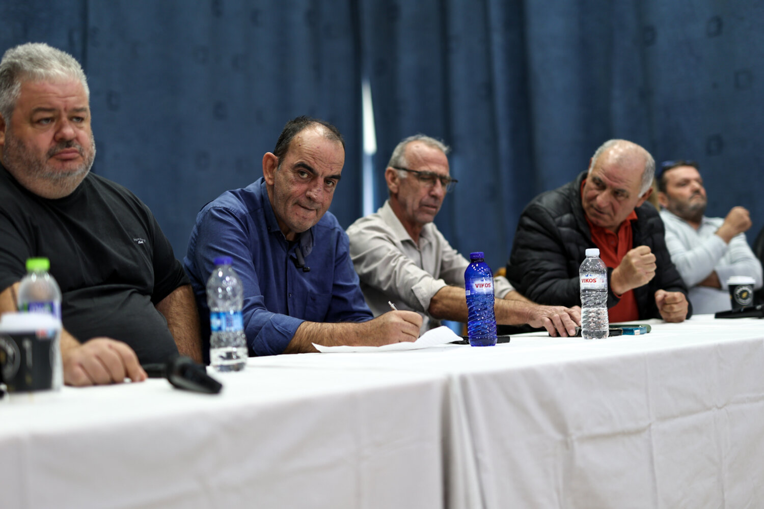 Κατάμεστη είναι η αίθουσα του Πολιτιστικού Κέντρου Νίκαιας από αγρότες και κτηνοτρόφους που έχουν ταξιδέψει στη Θεσσαλία από όλη την Ελλάδα και συμμετέχουν στην πανελλαδική σύσκεψη που διοργανώνει η Πανελλαδική Επιτροπή των Μπλόκων.