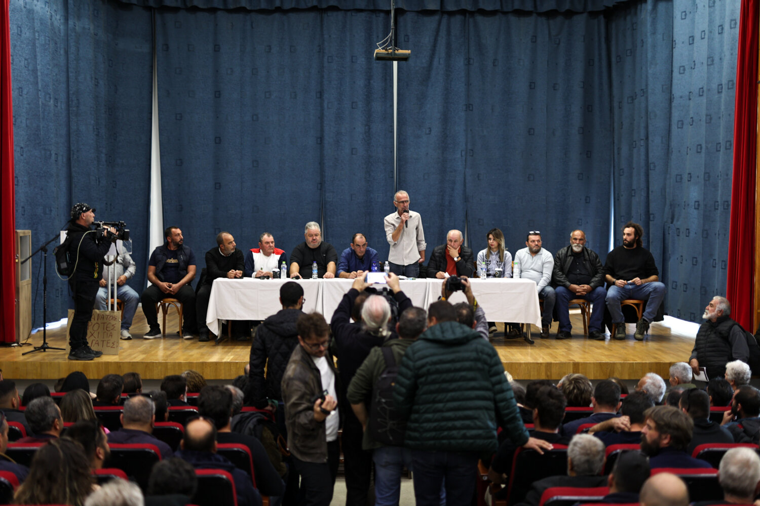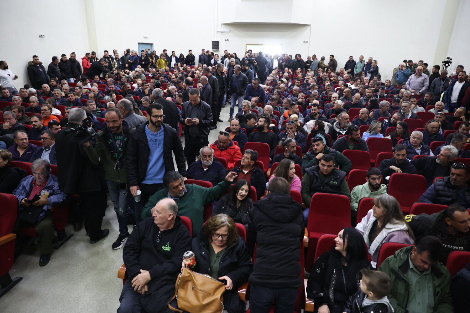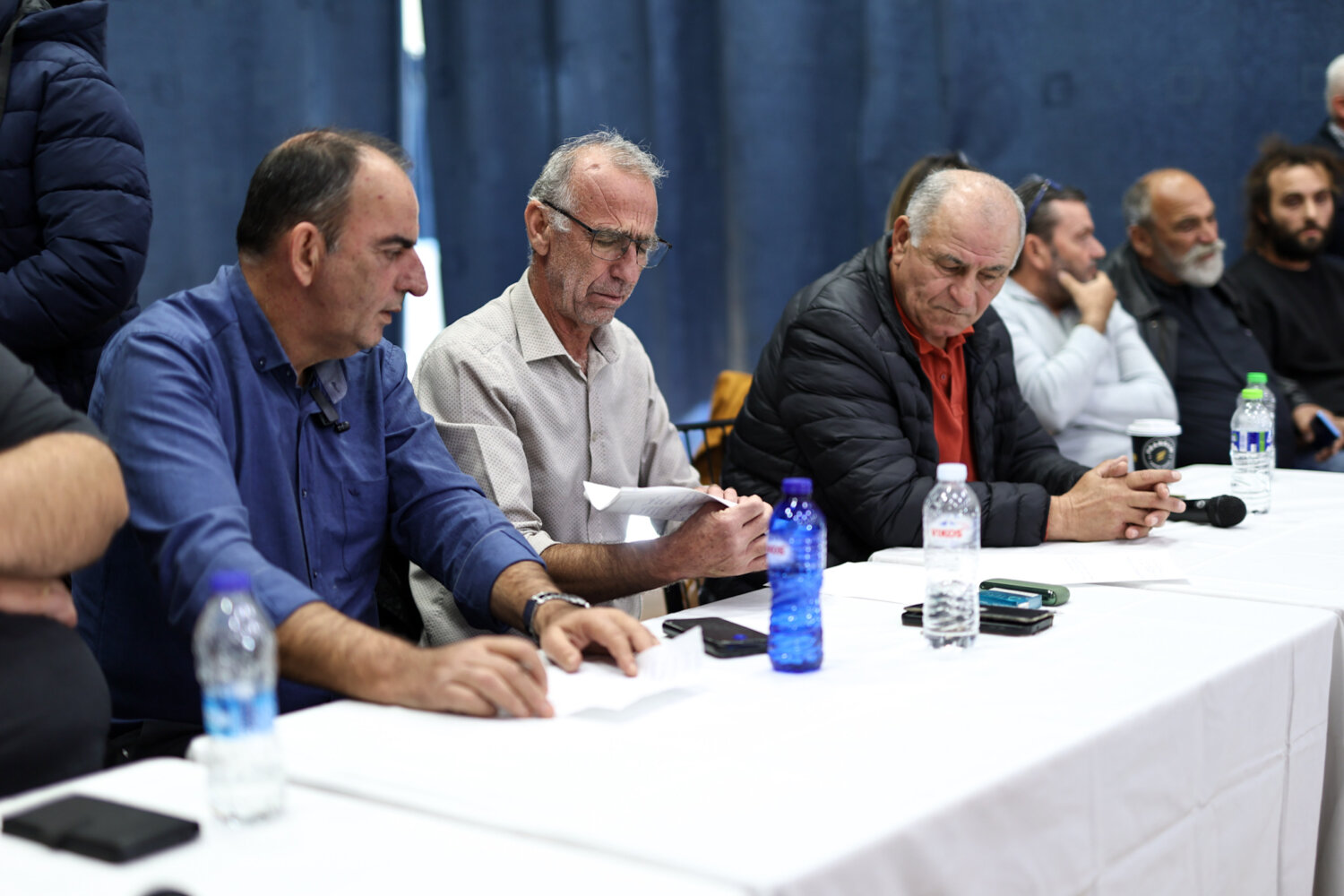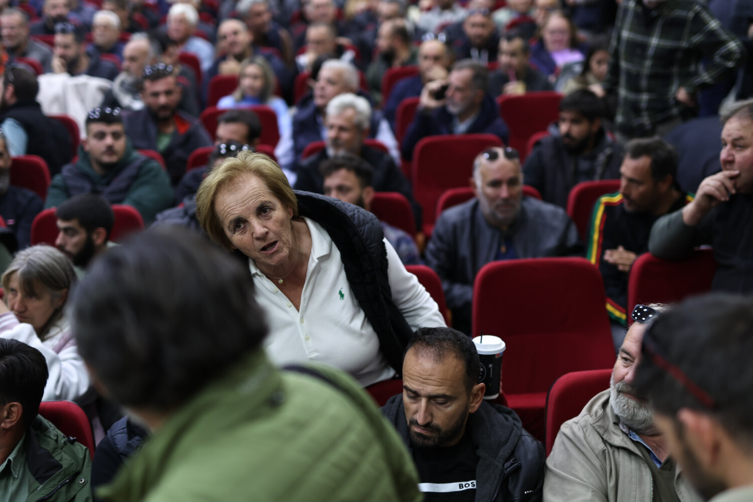 Κατάμεστη είναι η αίθουσα του Πολιτιστικού Κέντρου Νίκαιας από αγρότες και κτηνοτρόφους που έχουν ταξιδέψει στη Θεσσαλία από όλη την Ελλάδα και συμμετέχουν στην πανελλαδική σύσκεψη που διοργανώνει η Πανελλαδική Επιτροπή των Μπλόκων.