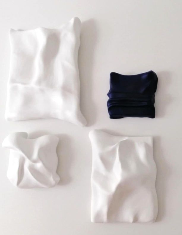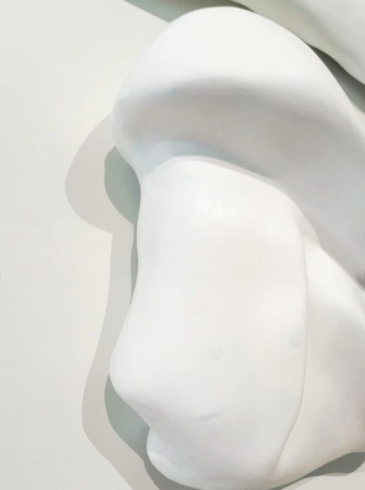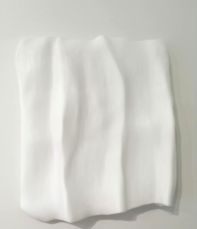 Μέσα από λευκές και απαλές πράσινες αποχρώσεις, οι επιτοίχιες γλυπτικές μορφές της λειτουργούν σαν ήχοι σιωπής. Δεν αφηγούνται κάτι συγκεκριμένο, αλλά προτείνουν μια αίσθηση ηρεμίας και καθαρότητας — έναν χώρο όπου το βλέμμα μπορεί να σταθεί και να αναπνεύσει. Η δουλειά της εκφράζει τη μετάβαση από τη ζωγραφική στη γλυπτική, όπου η επιφάνεια μετατρέπεται σε χώρο και το φως αποκτά υλική υπόσταση.