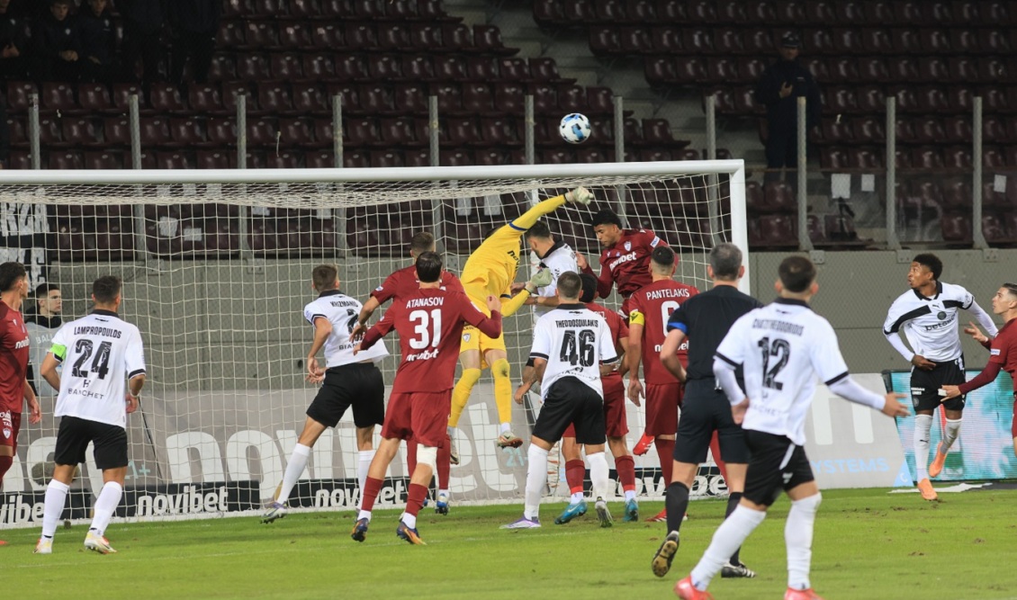 28’ Σουτ, όχι δυνατό, του Χατζηστραβού ο Λίλο έπεσε στη γωνία του και μπλόκαρε με διπλή προσπάθεια
