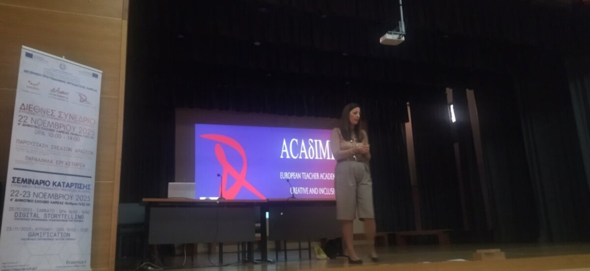 Η Διεύθυνση Πρωτοβάθμιας Εκπαίδευσης Λάρισας, σε συνεργασία με τον οργανισμό Action Synergy SA, ο οποίος αποτελεί τον συντονιστή φορέα του Ευρωπαϊκού Προγράμματος Erasmus+ «ACADIMIA- European Teachers’ Academy for Creative and Inclusive Learning», πραγματοποίησε Σεμινάριο Κατάρτισης, στο πλαίσιο της Ευρωπαϊκής Ακαδημίας Δημιουργικής και Συμπεριληπτικής Μάθησης ACAδIMIA, το Σάββατο 22 Νοεμβρίου και την Κυριακή 23 Νοεμβρίου 2025, στο 4ο Δημοτικό Σχολείο Λάρισας.