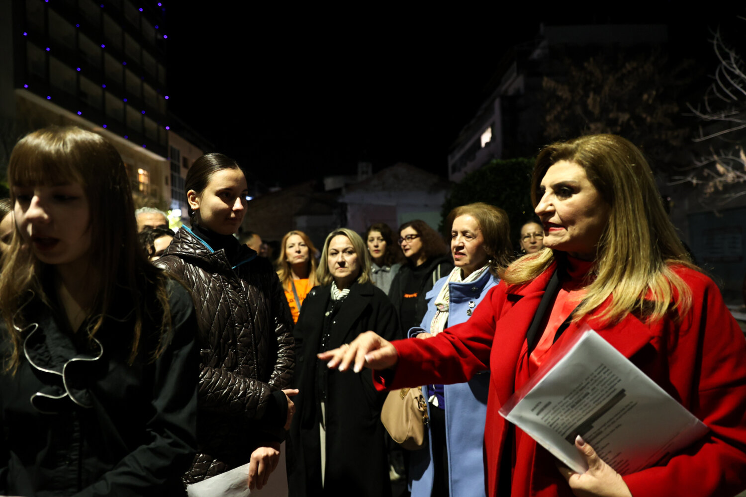 Οι δράσεις ξεκίνησαν στις 18:30 από το Αρχαίο Θέατρο Λάρισας, όπου μαθητές της πόλης, συνοδευόμενοι από τα κρουστά του Μουσικού Σχολείου υπό τη διεύθυνση του μαέστρου Γιάννη Μακρυγιάννη, μετέφεραν συμβολικά τα μηνύματα της εκδήλωσης προς το ΔΩΛ. Εκεί παρουσιάστηκε ένα καλλιτεχνικό δρώμενο με αναγνώσεις λογοτεχνικών κειμένων και αποσπάσματα αυτοβιογραφιών γυναικών από το δίκτυο «Η φωνή της».