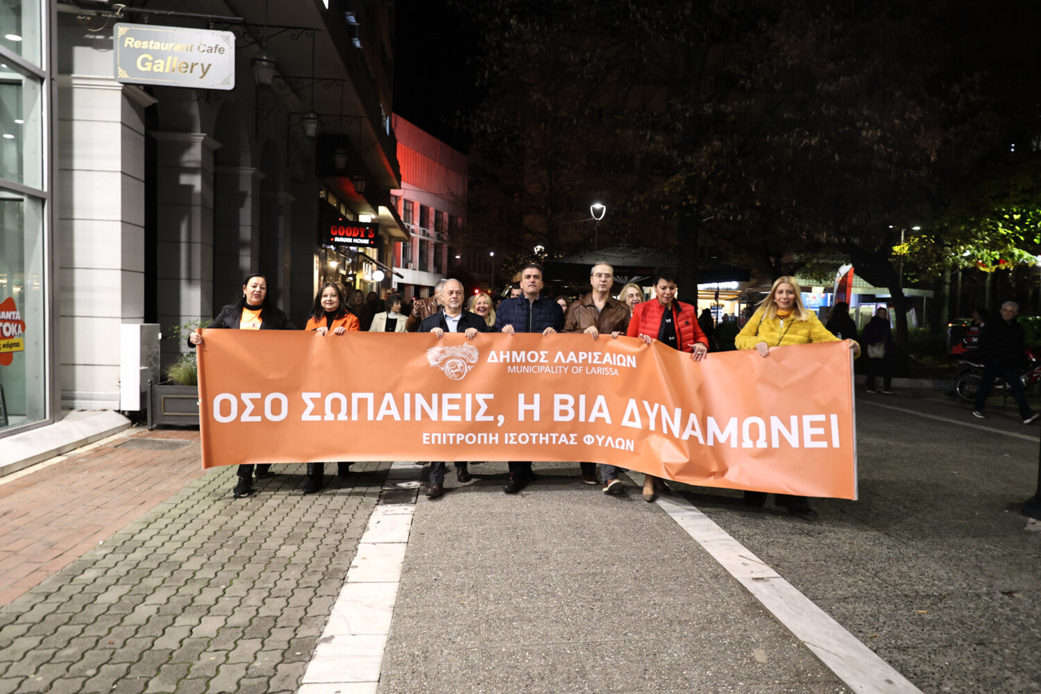 Με ισχυρό μήνυμα ενότητας και μηδενικής ανοχής απέναντι στη βία κατά των γυναικών πραγματοποιήθηκε το απόγευμα της Δευτέρας η δράση ευαισθητοποίησης με τίτλο «Όσο σωπαίνεις, η βία δυναμώνει», που διοργάνωσε η Επιτροπή Ισότητας Φύλων του Δήμου Λαρισαίων, στο πλαίσιο της Παγκόσμιας Ημέρας για την Εξάλειψη της Βίας κατά των Γυναικών.
