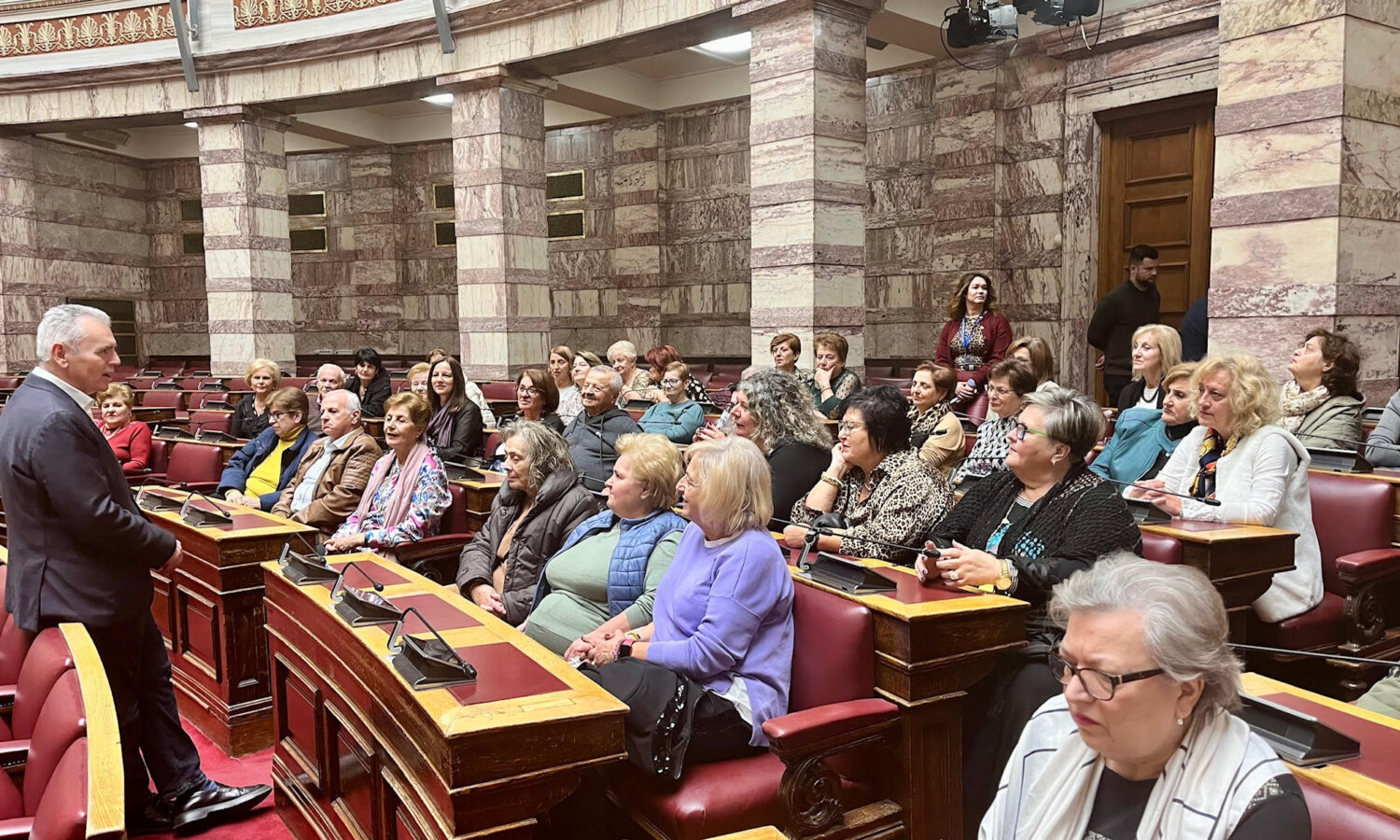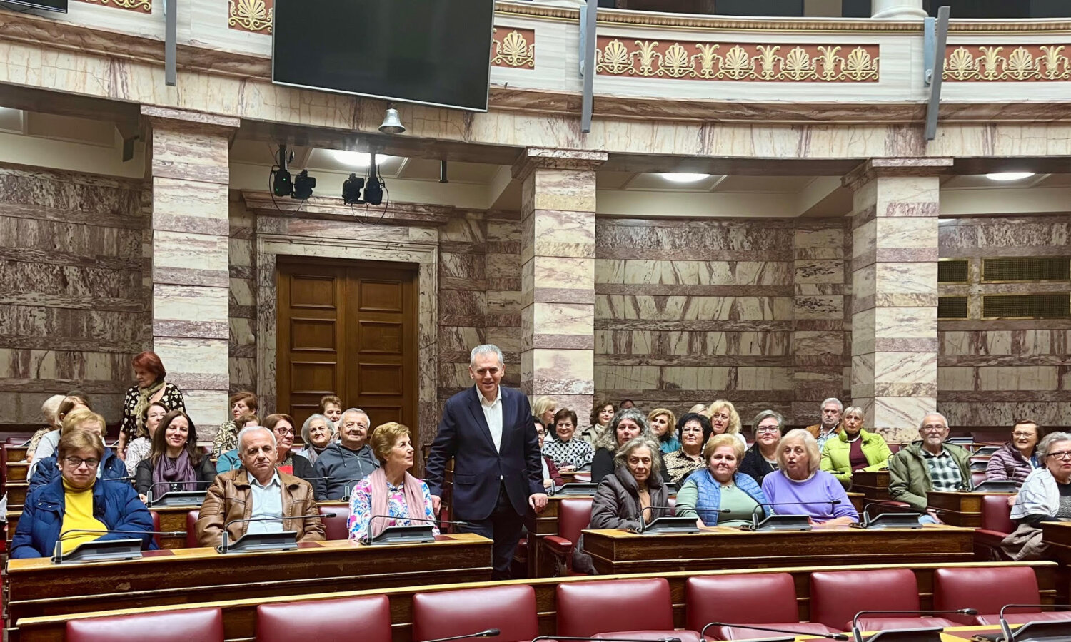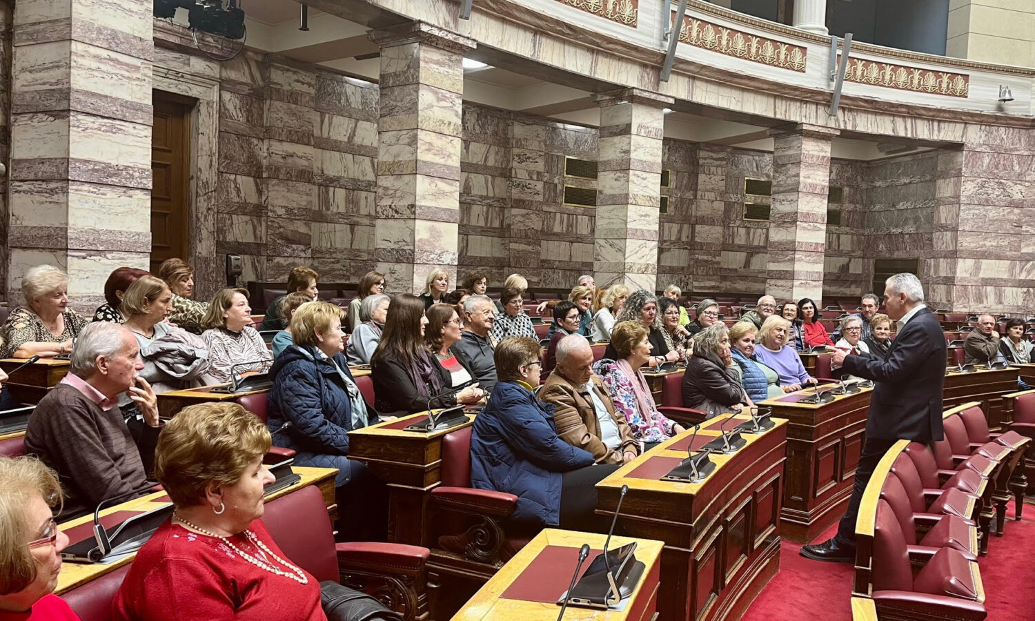 «Η επίσκεψή σας στη Βουλή κατά αγαθή συγκυρία συμπίπτει με την καταβολή του βοηθήματος των 250 ευρώ, ένα μόνιμο μέτρο που θα καταβάλλεται κάθε χρόνο τον Νοέμβριο σε 1,4 εκατομμύρια συνταξιούχους». Τα παραπάνω τόνισε ο Γενικός Γραμματέας της Κοινοβουλευτικής Ομάδας της Νέας Δημοκρατίας, βουλευτής Λαρίσης, κ. Μάξιμος Χαρακόπουλος, καλωσορίζοντας στο κοινοβούλιο 100 συνταξιούχους μέλη του 2ου και 3ου ΚΑΠΗ Λάρισας. Τους συνταξιούχους συνόδευαν οι κυρίες Κατερίνα Τακούσιου και Νίκη Κυριτσάκα.