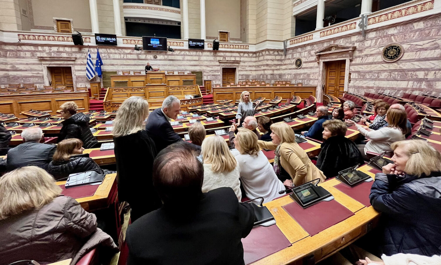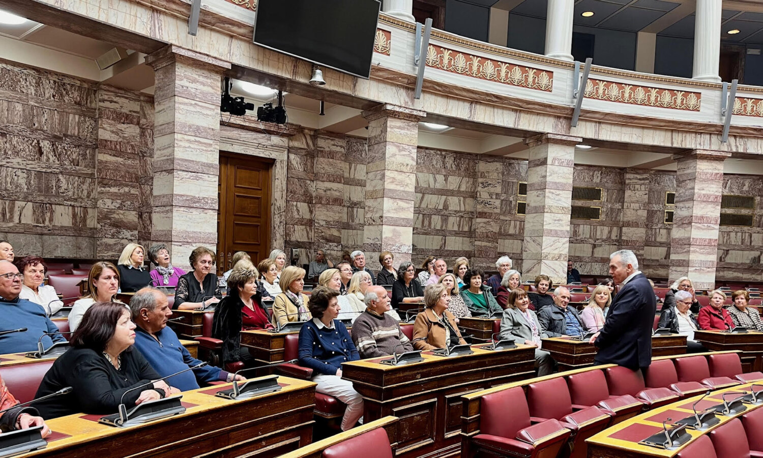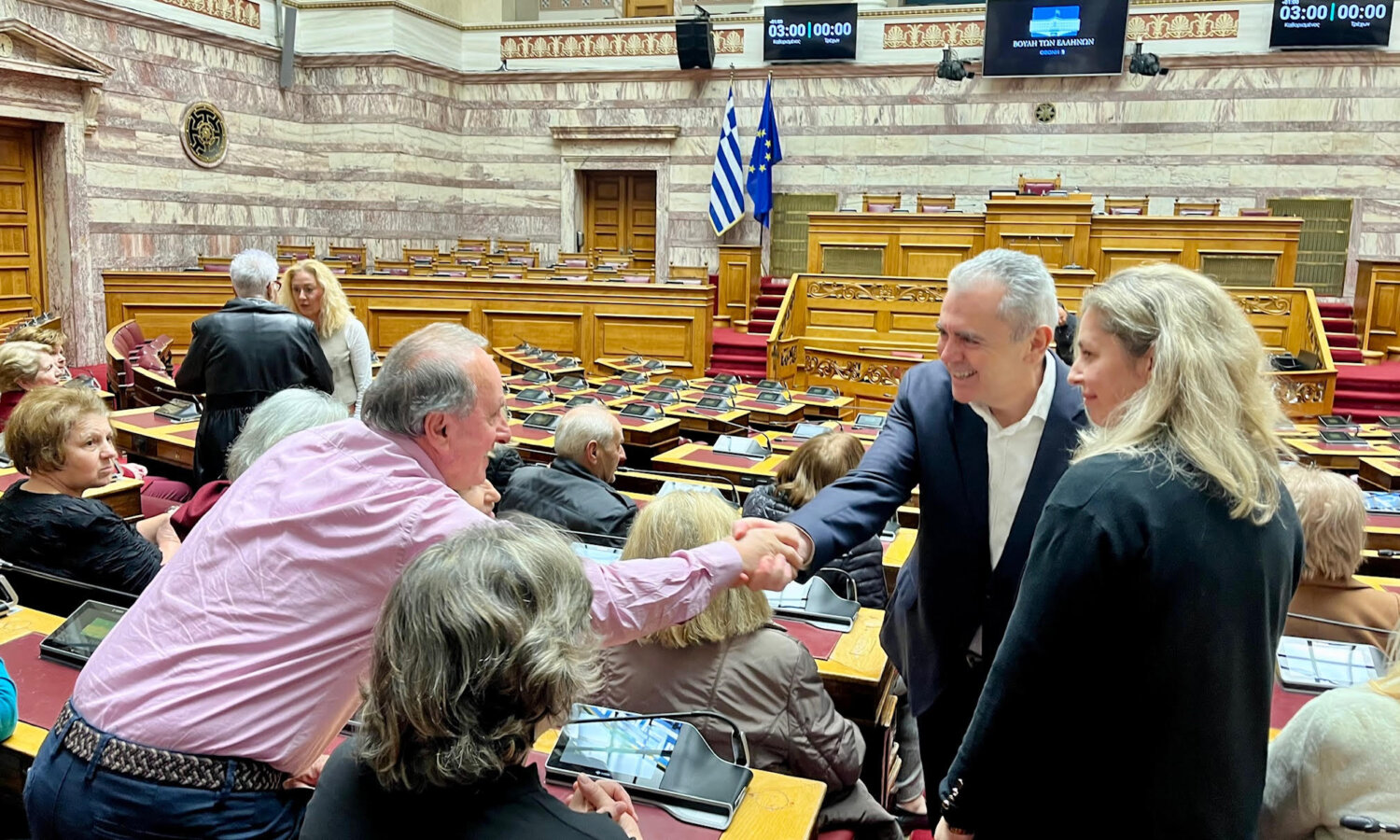 «Η επίσκεψή σας στη Βουλή κατά αγαθή συγκυρία συμπίπτει με την καταβολή του βοηθήματος των 250 ευρώ, ένα μόνιμο μέτρο που θα καταβάλλεται κάθε χρόνο τον Νοέμβριο σε 1,4 εκατομμύρια συνταξιούχους». Τα παραπάνω τόνισε ο Γενικός Γραμματέας της Κοινοβουλευτικής Ομάδας της Νέας Δημοκρατίας, βουλευτής Λαρίσης, κ. Μάξιμος Χαρακόπουλος, καλωσορίζοντας στο κοινοβούλιο 100 συνταξιούχους μέλη του 2ου και 3ου ΚΑΠΗ Λάρισας. Τους συνταξιούχους συνόδευαν οι κυρίες Κατερίνα Τακούσιου και Νίκη Κυριτσάκα.