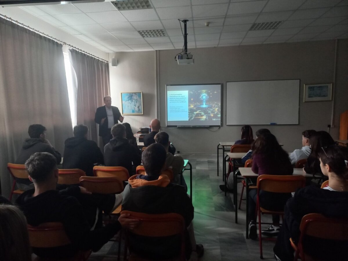 Την Τρίτη 25 Νοεμβρίου 2025 ο εκπρόσωπος της εταιρείας Empedus Dr Γουματιανός Νικήτας (expert data AI) ενημέρωσε τους μαθητές της Γ΄ τάξης του σχολείου με θέμα: «Κατανοώντας την παραγωγική ΑΙ για καθηγητές». Στο πλαίσιο του μαθήματος της Πληροφορικής πραγματοποιήθηκε μια εισαγωγική δραστηριότητα σχετικά με την παραγωγική Τεχνητή Νοημοσύνη (Generative AI). Οι μαθητές παρακολούθησαν μια απλή, κατανοητή παρουσίαση για το τι είναι η παραγωγική ΑΙ, πώς λειτουργεί και με ποιους τρόπους χρησιμοποιείται σήμερα, τόσο στην εκπαίδευση όσο και στην καθημερινή ζωή.