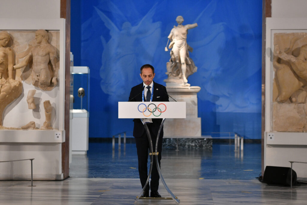Οι χαιρετισμοί ολοκληρώθηκαν με τον Πρόεδρο της Οργανωτικής Επιτροπής Ολυμπιακών και Παραολυμπιακών Αγώνων “Milano Cortina 2026”, Τζιοβάνι Μαλαγκό.