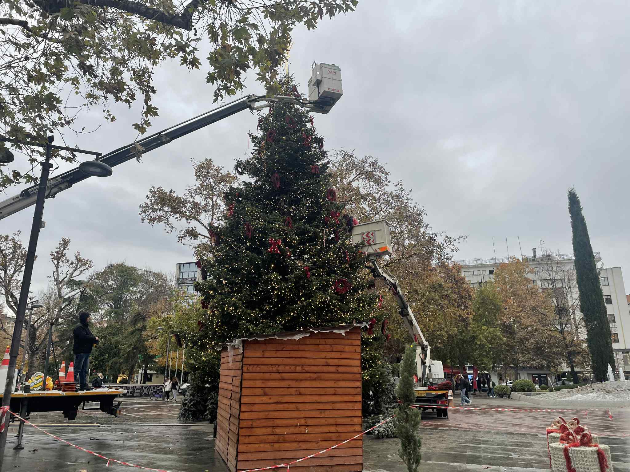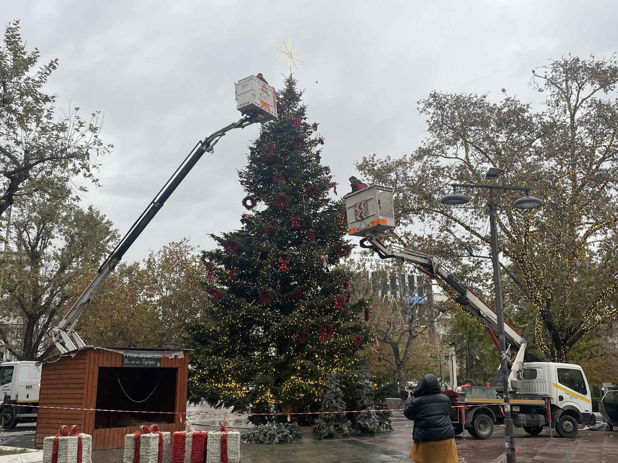 Παράλληλα, οι εργασίες συνεχίζονται σε όλο το χώρο της Κεντρικής Πλατείας για να είναι απόλυτα έτοιμη το βράδυ της Δευτέρας, με το άναμμα του δέντρου που θα συνοδευτεί από τη συναυλία της Πέγκυς Ζήνα.