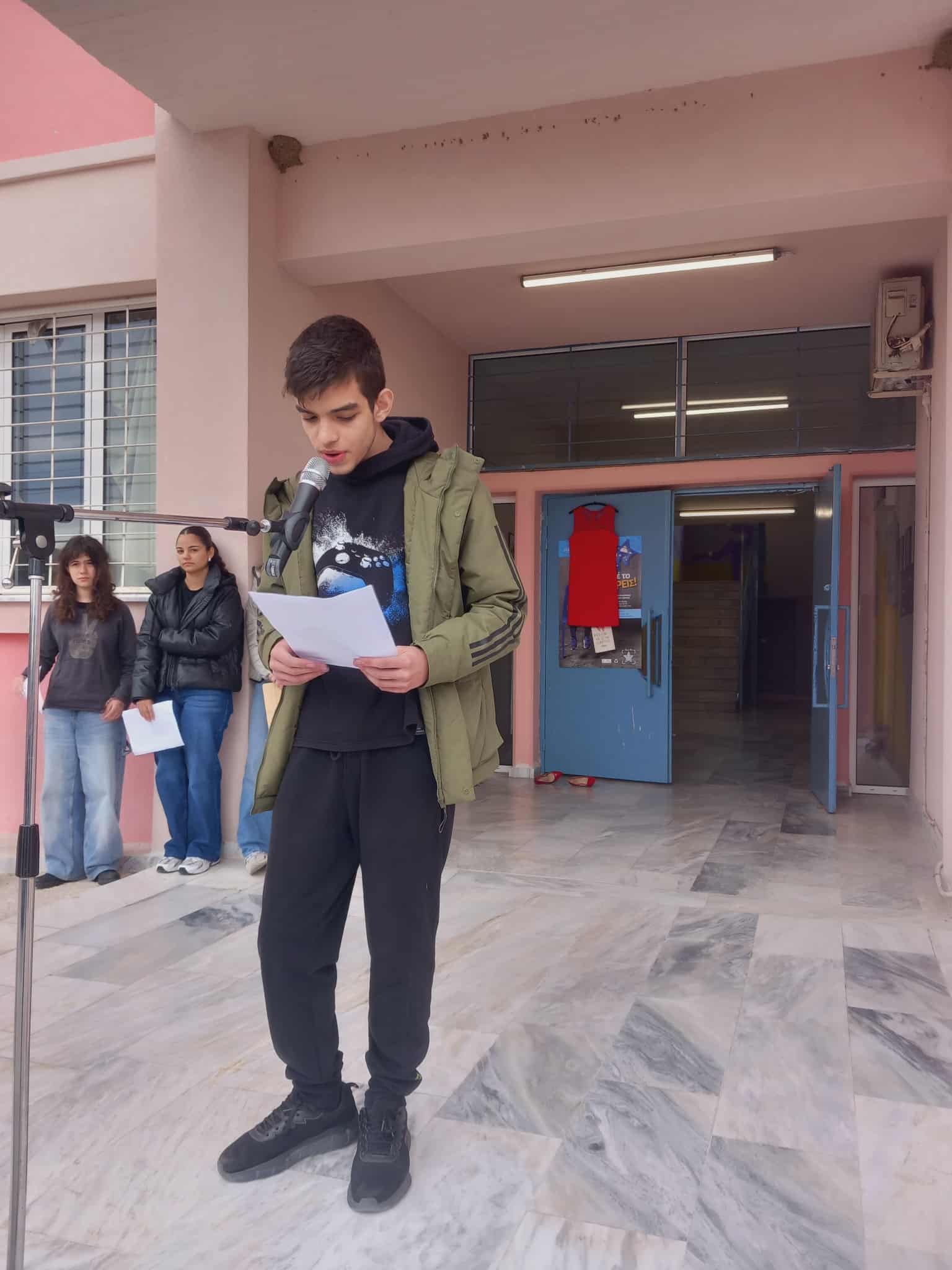 Η δράση ολοκληρώθηκε με ένα καλλιτεχνικό μήνυμα από τους μαθητές της Α’ τάξης, Κακαδιάρη Ανδρέα και Καρασούλα Άννα.
