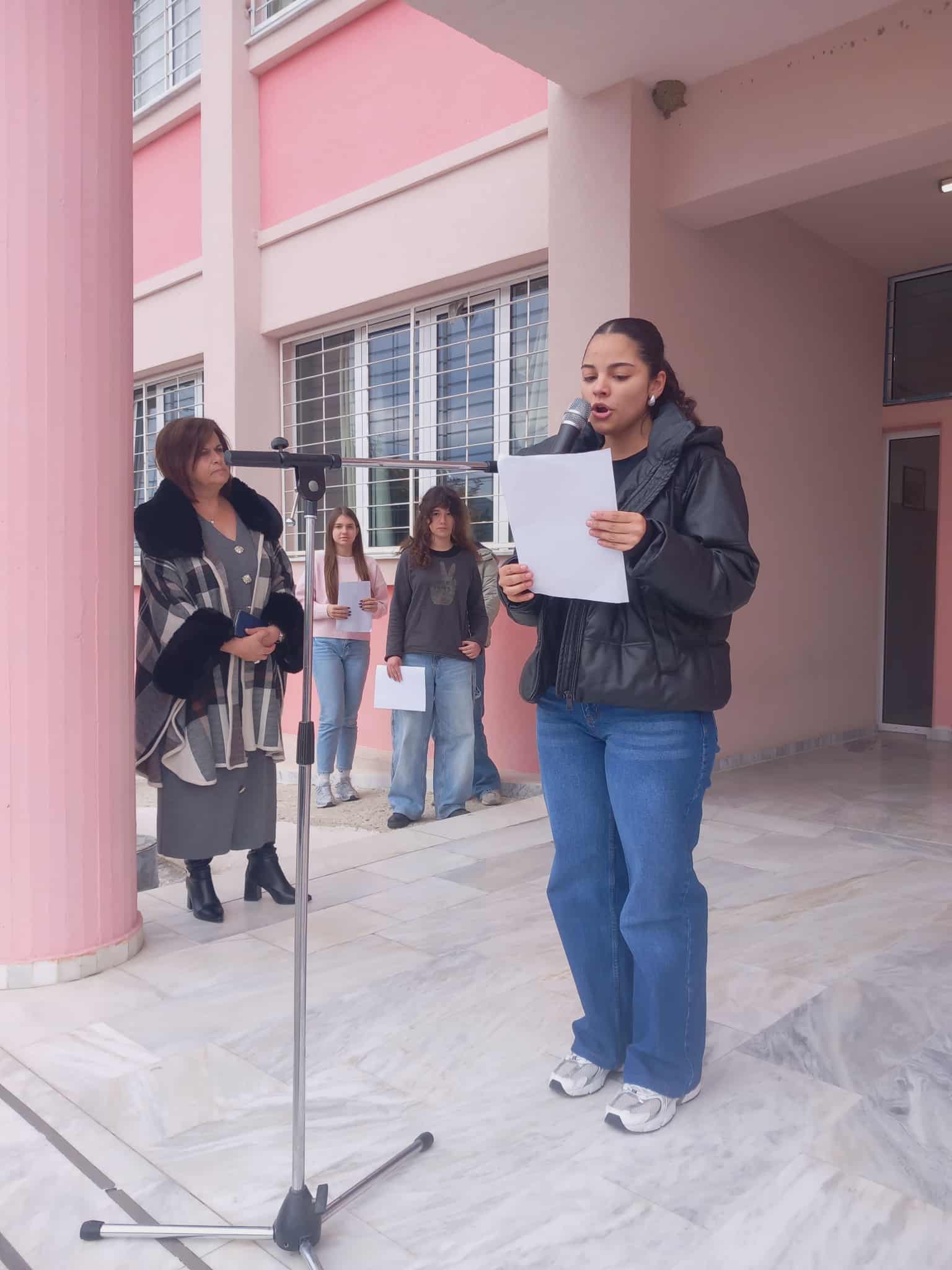 Το σχολείο δεσμεύεται να συνεχίσει τέτοιες πρωτοβουλίες. Γιατί το θέμα δεν αφορά μια μέρα, αλλά μια βαθιά ανάγκη να στεκόμαστε ο ένας δίπλα στον άλλον. Να θυμόμαστε ότι κάθε γυναίκα που πληγώθηκε, κάθε κορίτσι που φοβήθηκε, κάθε φωνή που έσπασε από τον πόνο αξίζει μια κοινωνία που την ακούει, τη στηρίζει και δεν την αφήνει μόνη.