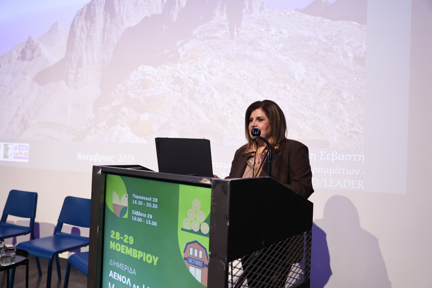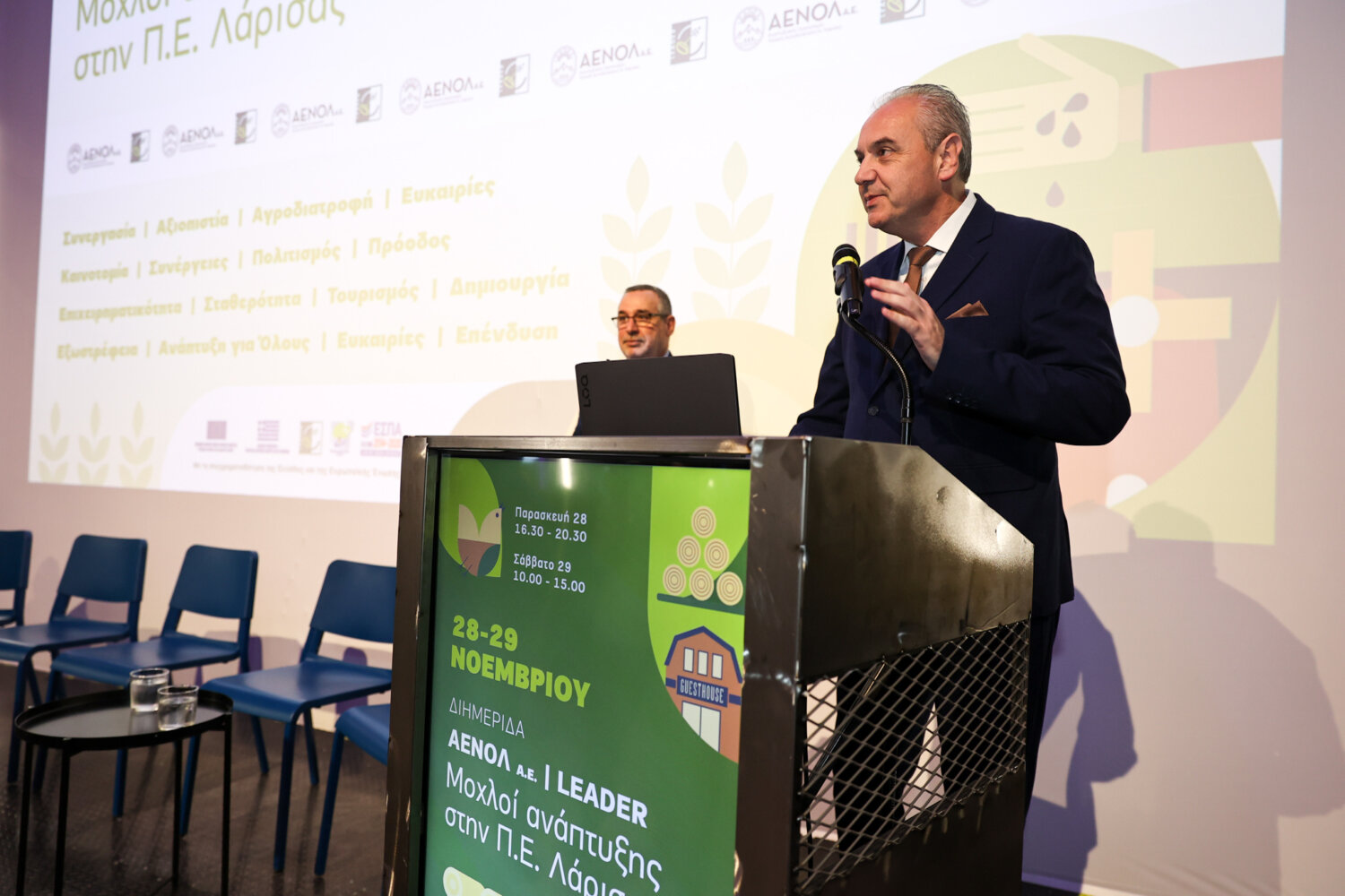 Σεβαστή Μπασδέκη (Συντονίστρια του προγράμματος LEDER): Το διήμερο αυτό είναι αφιερωμένο στα 33 χρόνια εφαρμογής του προγράμματος LEADER στον νομό Λάρισας και στα 33 χρόνια από την ίδρυση του αναπτυξιακού οργανισμού της ΑΕΝΟΛ. Το πρόγραμμα LEADER από τις δεκαετίες του 1990 με τη στήριξη του Υπουργείου Αγροτικής Ανάπτυξης και Τροφίμων κατάφερε να γίνει ο πιο αποτελεσματικός μηχανισμός της συνεργασίας.