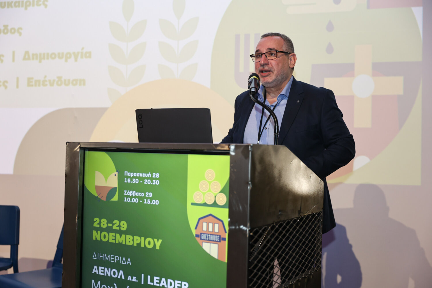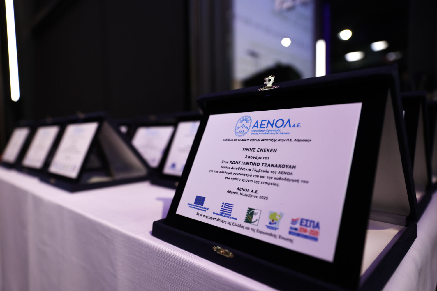 Ιωάννης Σαμώτας (Γενικός Διευθυντής ΑΕΝΟΛ): Είμαστε σήμερα εδώ για να τιμήσουμε τη λήξη του προγράμματος LEADER διαχειριστικής περιόδου 2014-2020 και να τιμήσουμε ταυτόχρονα τα 32 χρόνια του οργανισμού του Αναπτυξιακού Οργανισμού Νομού Λάρισας και τα 33 χρόνια του LEADER στο νομό Λάρισας. Είμαστε ιδιαίτεροι χαρούμενοι γιατί έχουμε πετύχει πάρα πολλά όλα αυτά τα χρόνια και θέλω να ευχαριστήσω όλους τους επενδυτές που ήταν κοντά μας και όλο το προσωπικό του οργανισμού που δουλεύει για να προσφέρει στην τοπική ανάπτυξη.