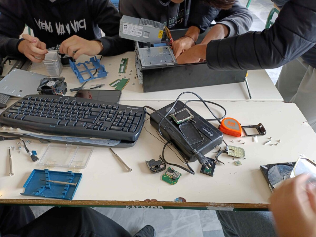 «Στο πλαίσιο της δράσης του Ελληνικού Οργανισμού Ανακύκλωσης (Ε.Ο.ΑΝ.) με τίτλο «Αποσυναρμολογούμε, καταγράφουμε, ανακυκλώνουμε» και με αντικείμενο τον Ηλεκτρικό και Ηλεκτρονικό Εξοπλισμό, πραγματοποιήθηκε την Τετάρτη 26/11/2025 ένα ιδιαίτερα ενδιαφέρον και συμμετοχικό εργαστήριο στο σχολείο μας. Μια ομάδα μαθητών της Β’ Λυκείου, αποτελούμενη από έξι αγόρια και πέντε κορίτσια, αφιέρωσε τρεις δημιουργικές ώρες σε μια δράση που τους έφερε σε άμεση επαφή με τον «κρυμμένο κόσμο» μέσα στις ηλεκτρικές και ηλεκτρονικές συσκευές που χρησιμοποιούμε καθημερινά. Οι μαθητές αποσυναρμολόγησαν διάφορες συσκευές, εξερεύνησαν το εσωτερικό τους, αναγνώρισαν υλικά, εξαρτήματα και επιμέρους κατασκευές, και κατέγραψαν αναλυτικά τα ευρήματά τους. Η διαδικασία τους βοήθησε να κατανοήσουν καλύτερα πώς λειτουργούν οι συσκευές, αλλά και πώς μπορούν να αξιοποιηθούν τα υλικά τους μέσα από υπεύθυνες πρακτικές ανακύκλωσης.
