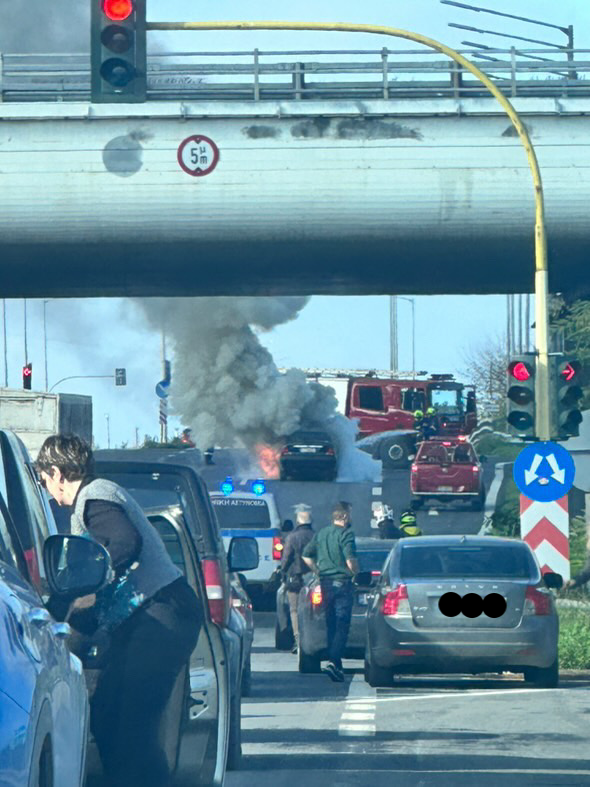 Συνάμα, είχε διακοπεί η κυκλοφορία στο σημείο, ενώ οι επιβαίνοντες των άλλων οχημάτων παρακολουθούσαν την επιχείρηση κατάσβεσης.