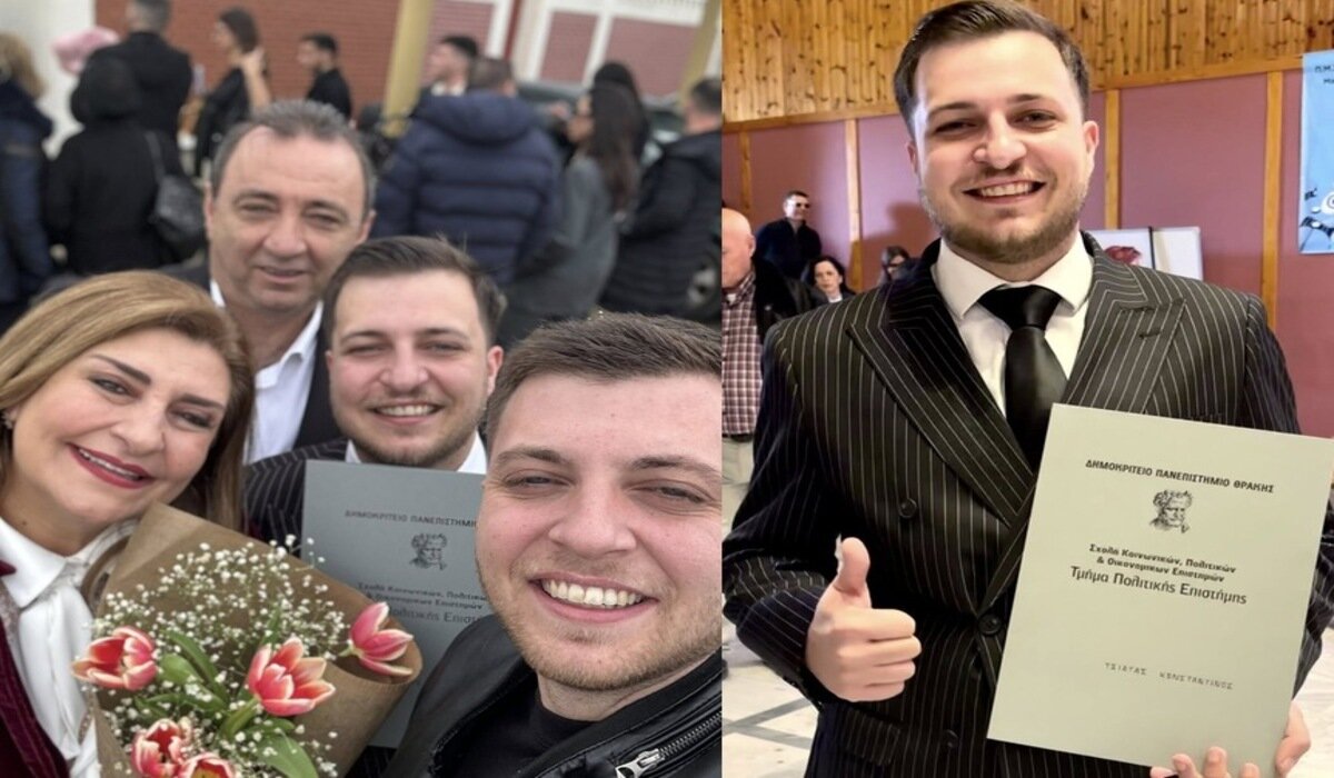 «Ορκωμοσία στο ΔΗΜΟΚΡΙΤΕΙΟ! Ο Κωνσταντίνος μου, μαχόμενος δικηγόρος πια, αφού ολοκλήρωσε τις μεταπτυχιακές του σπουδές, πήρε το δεύτερο πτυχίο του στις Πολιτικές Κοινωνικές & Οικονομικές Επιστήμες, από το Τμήμα Πολιτικων Επιστημών του Δημοκρίτειου Πανεπιστημίου Θράκης.