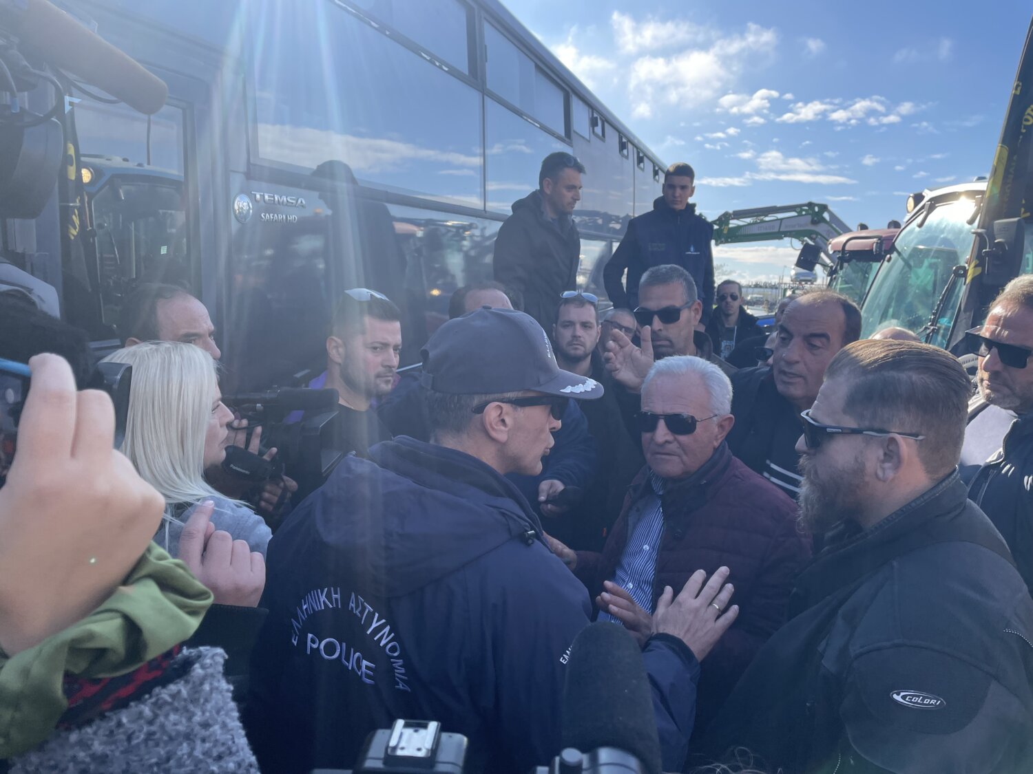 Οι αγρότες ζητούν από τις αστυνομικές δυνάμεις να απομακρυνθούν για να μην έρθουν σε σύγκρουση, τη στιγμή που από άλλα σημεία προσπαθούν να προσεγγίσουν την Εθνική Οδό.