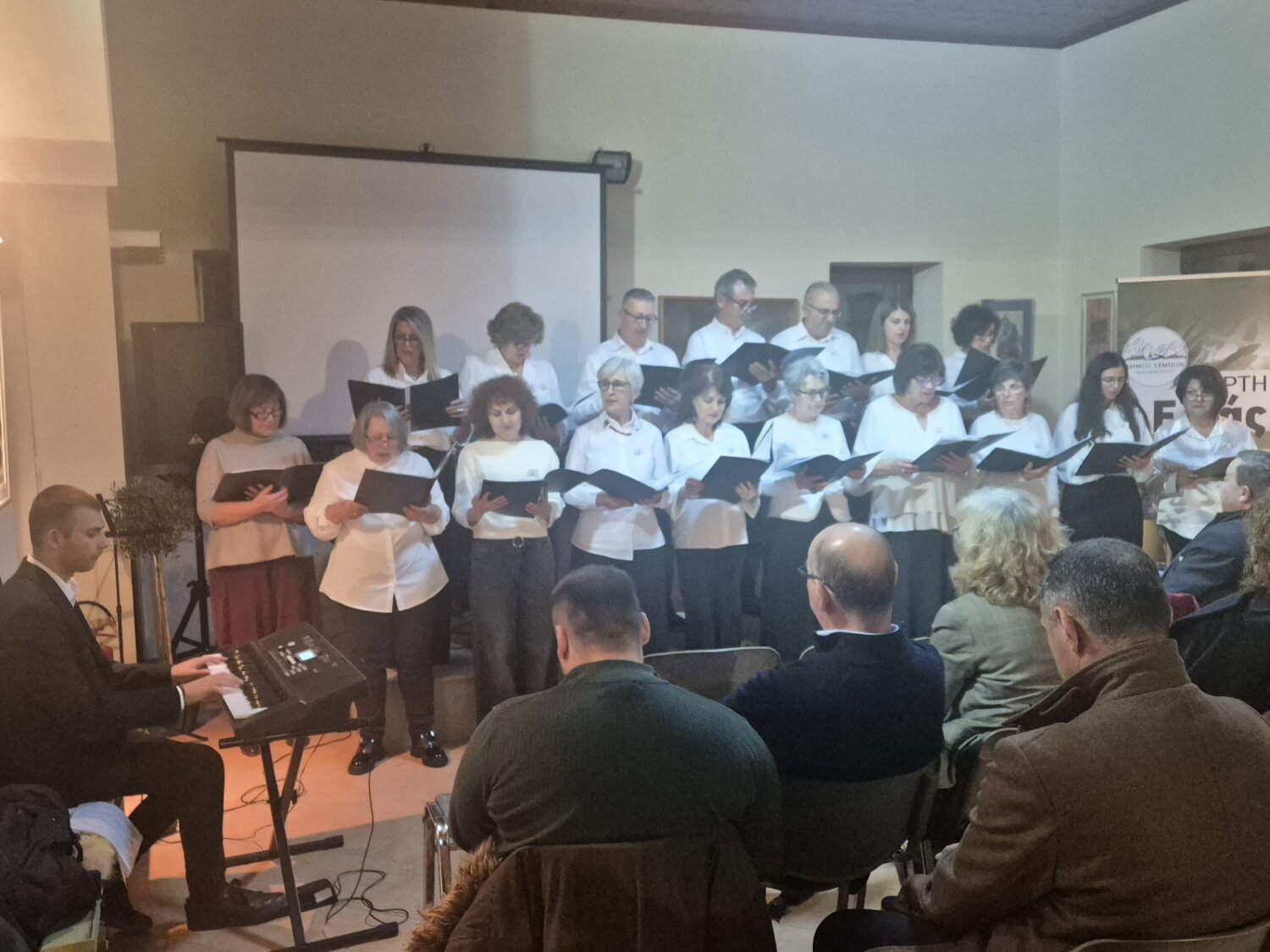 Το πρόγραμμα ολοκληρώθηκε με μια εξαιρετική μουσική παρέμβαση από τη μεικτή χορωδία του Πολιτιστικού Συλλόγου Γυναικών Γόννων «Νίκος Χατζής», η οποία καταχειροκροτήθηκε από το κοινό.