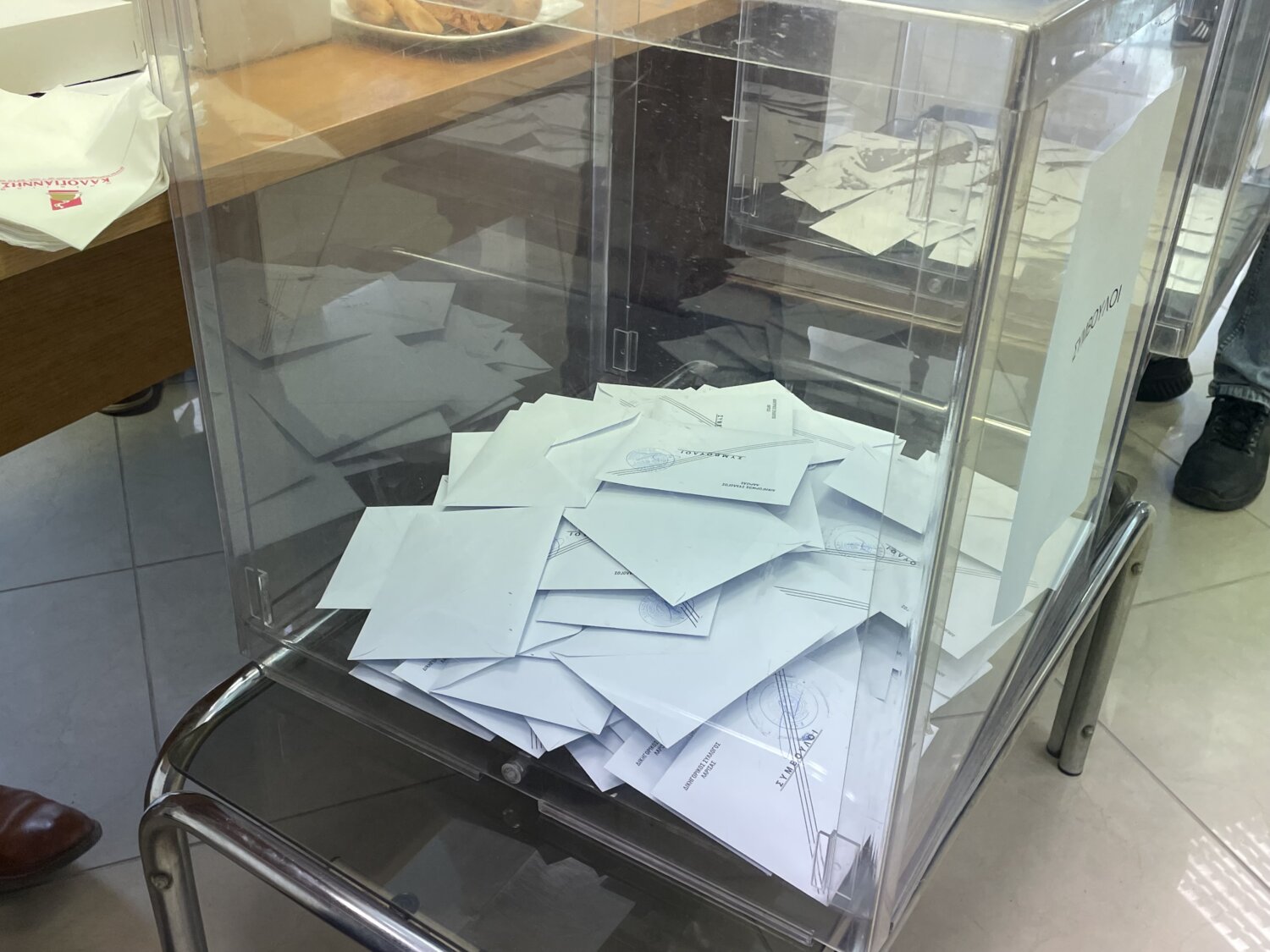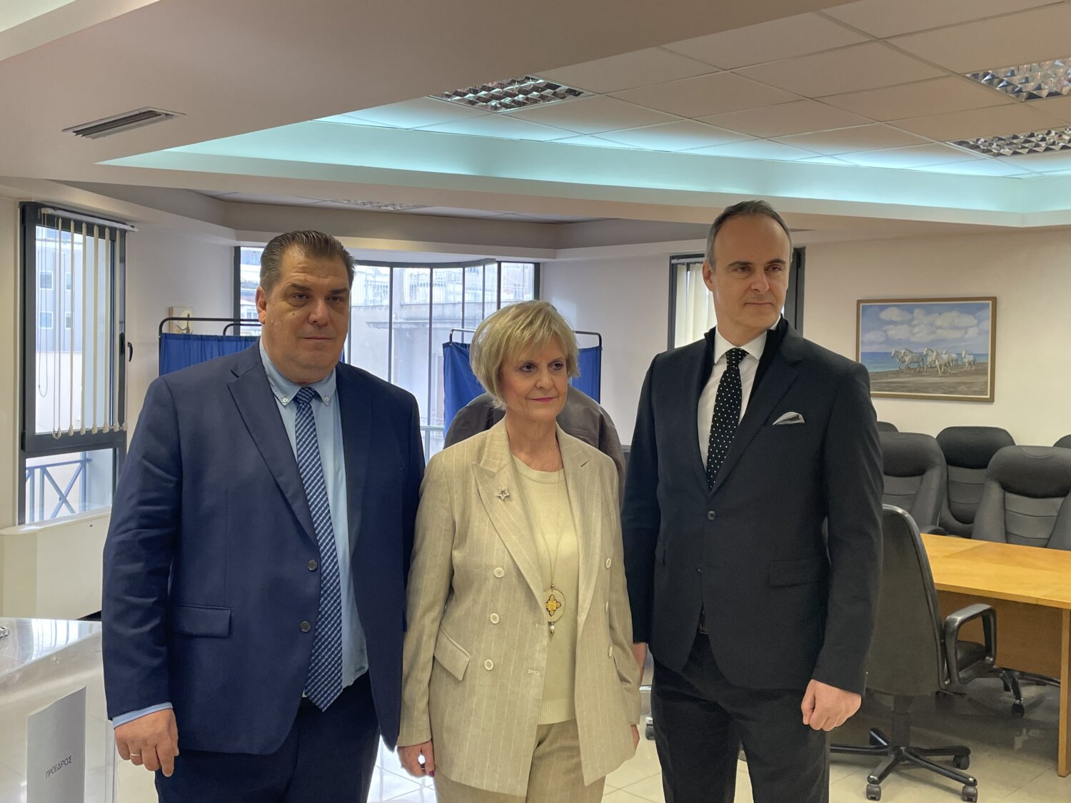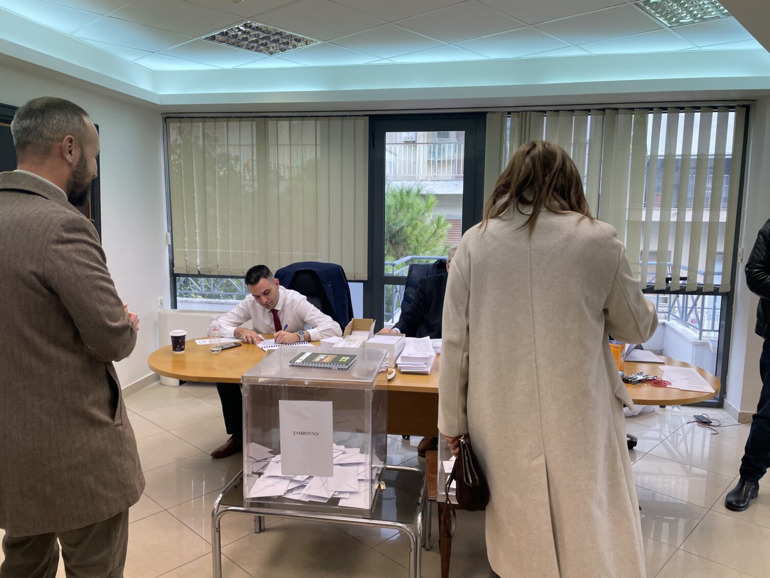 Οι τρεις υποψήφιοι για την προεδρία —ο νυν πρόεδρος Τρύφωνας Τσάτσαρος, η Δέσποινα Μίγα – Κατσογιάννη και ο Στέλιος Καλογεράς— βρίσκονται από νωρίς στον χώρο, συνομιλώντας με συναδέλφους και υποστηρικτές τους.
