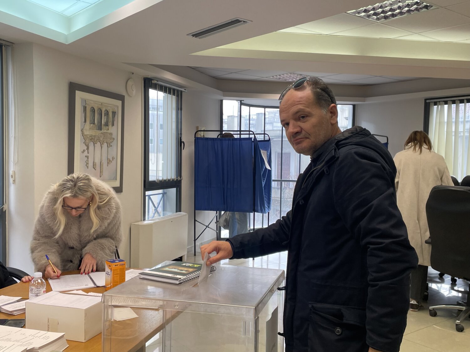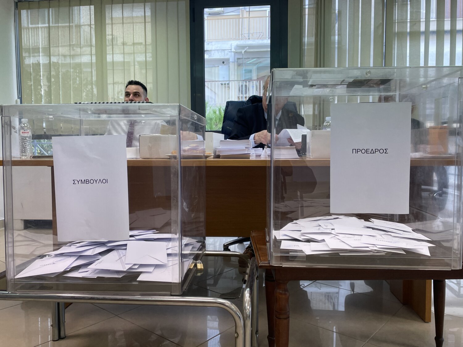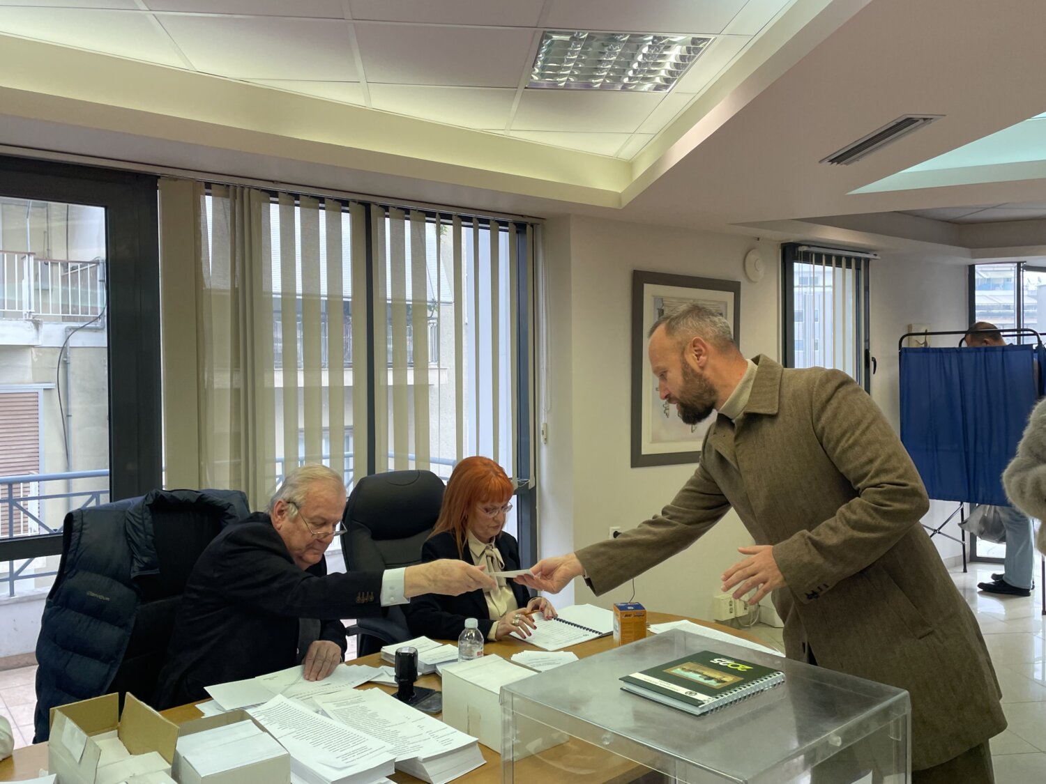 Οι τρεις υποψήφιοι για την προεδρία —ο νυν πρόεδρος Τρύφωνας Τσάτσαρος, η Δέσποινα Μίγα – Κατσογιάννη και ο Στέλιος Καλογεράς— βρίσκονται από νωρίς στον χώρο, συνομιλώντας με συναδέλφους και υποστηρικτές τους.